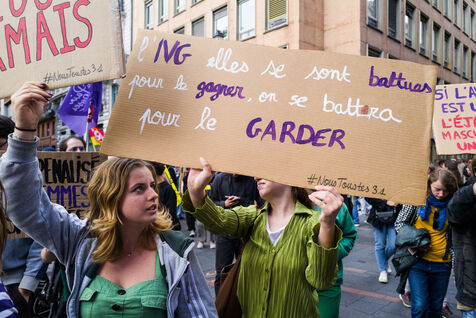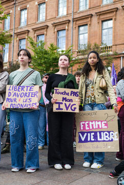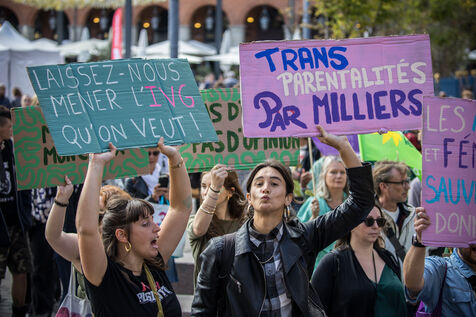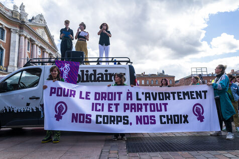 France, Toulouse, 2024-09-28. People demonstrate on the Place du Capitole to denounce the reduction in Family Planning subsidies by the Occitanie regional council.