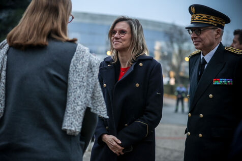 France, Toulouse, 2025-01-16. Agnes Pannier-Runacher, Minister of Ecological Transition, Biodiversity, Forests, Sea, Fisheries, traveling to the Meteo France site in the suburbs of Toulouse