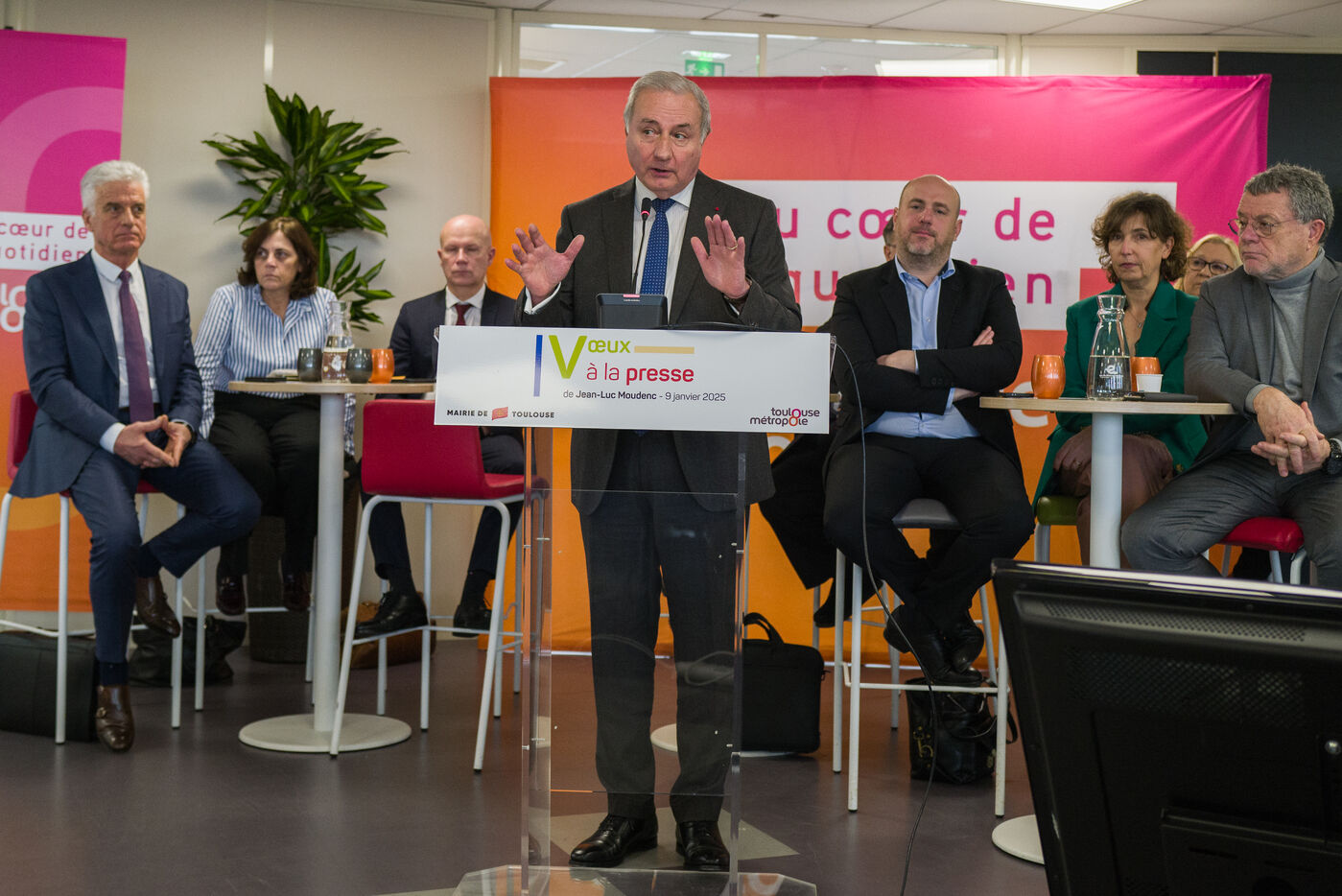 France, Toulouse, 2025-01-09. Jean Luc Moudenc, mayor of Toulouse and president of Toulouse Métropole during his greetings to the press.