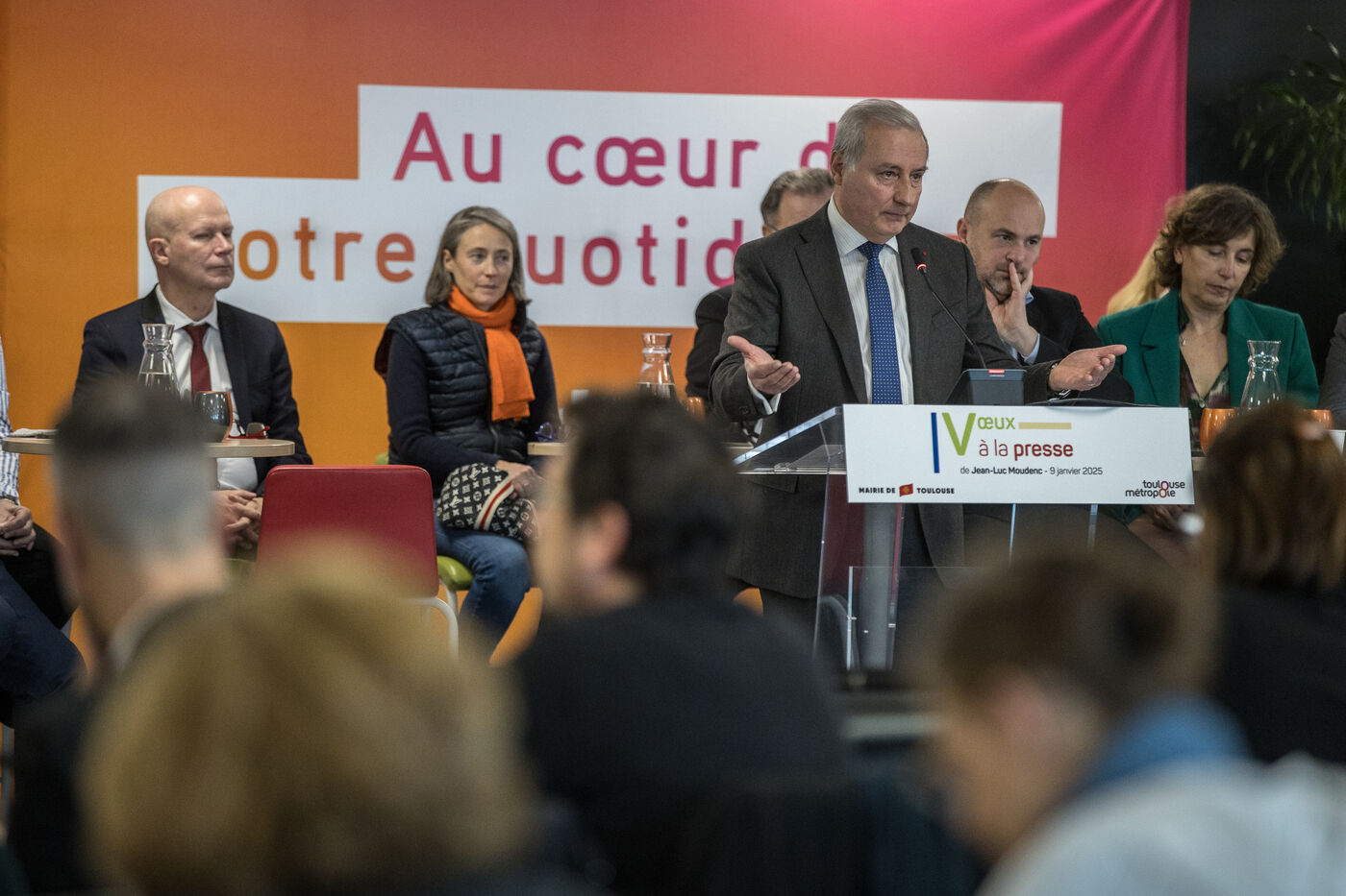 France, Toulouse, 2025-01-09. Jean Luc Moudenc, maire de Toulouse et president de Toulouse Metropole lors de ses voeux a la presse.