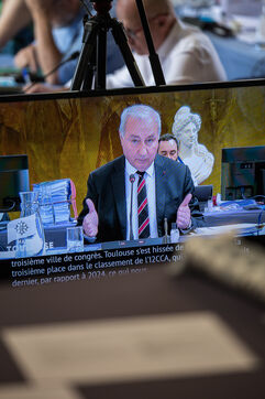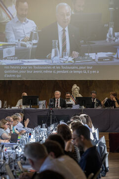 France, Toulouse, 2025-03-27. Le maire de Toulouse Jean Luc Moudenc pendant le Conseil Municipal de la ville de Toulouse.