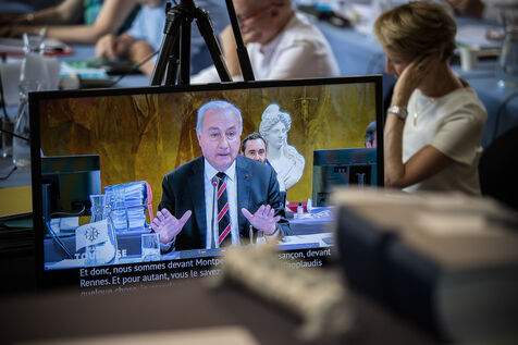 France, Toulouse, 2025-03-27. The mayor of Toulouse Jean Luc Moudenc during the Municipal Council of the city of Toulouse.