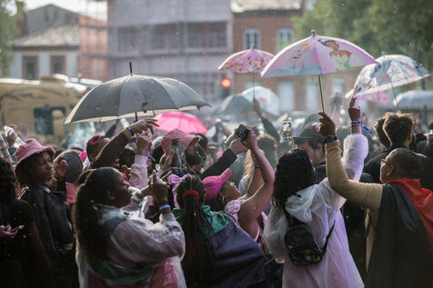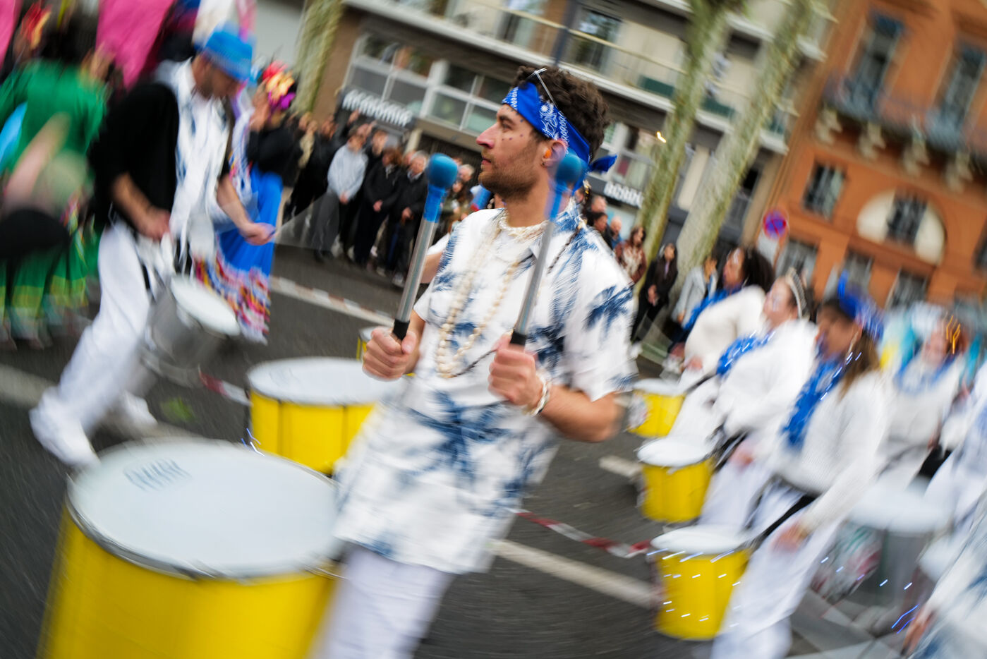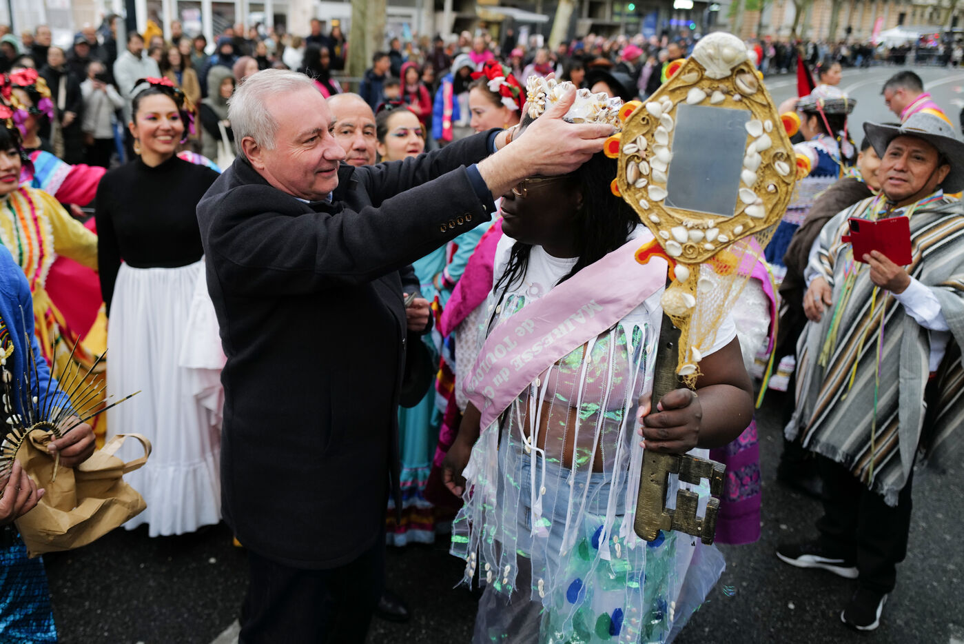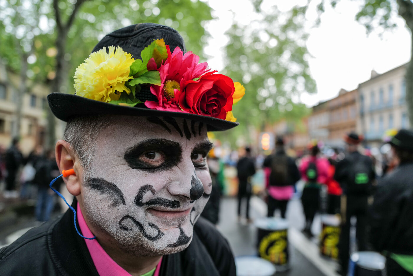 France, Toulouse, 2025-04-19. Festive and colorful atmosphere takes place in the streets of downtown Toulouse in the south of France during the Toulouse Carnival organized by the Unified Carnival Organization Committee (COCU).