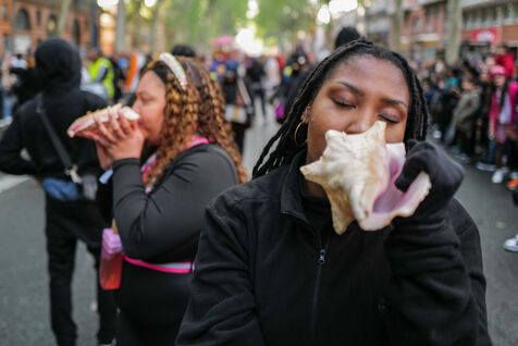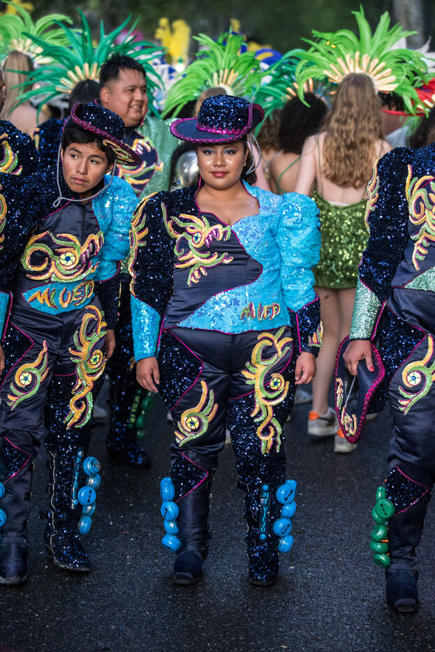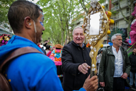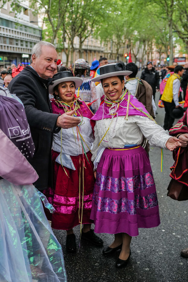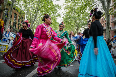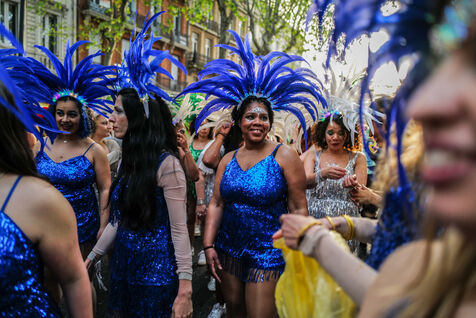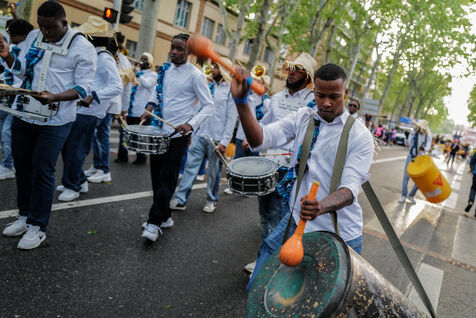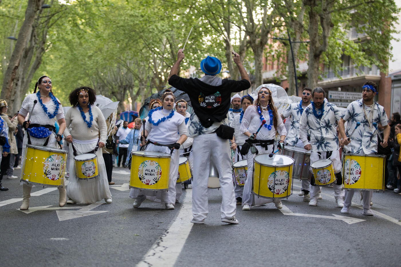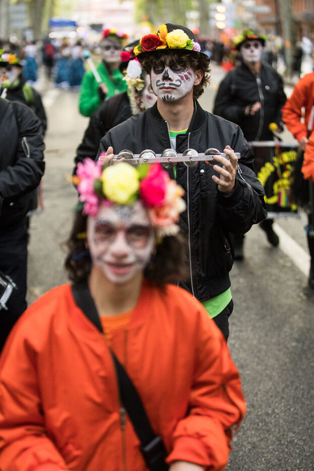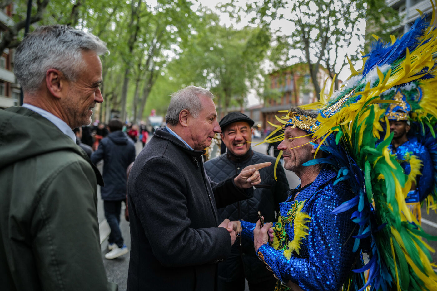 France, Toulouse, 2025-04-19. Festive and colorful atmosphere takes place in the streets of downtown Toulouse in the south of France during the Toulouse Carnival organized by the Unified Carnival Organization Committee (COCU).