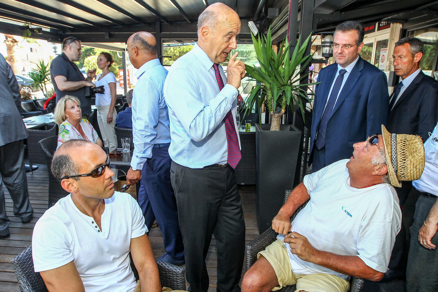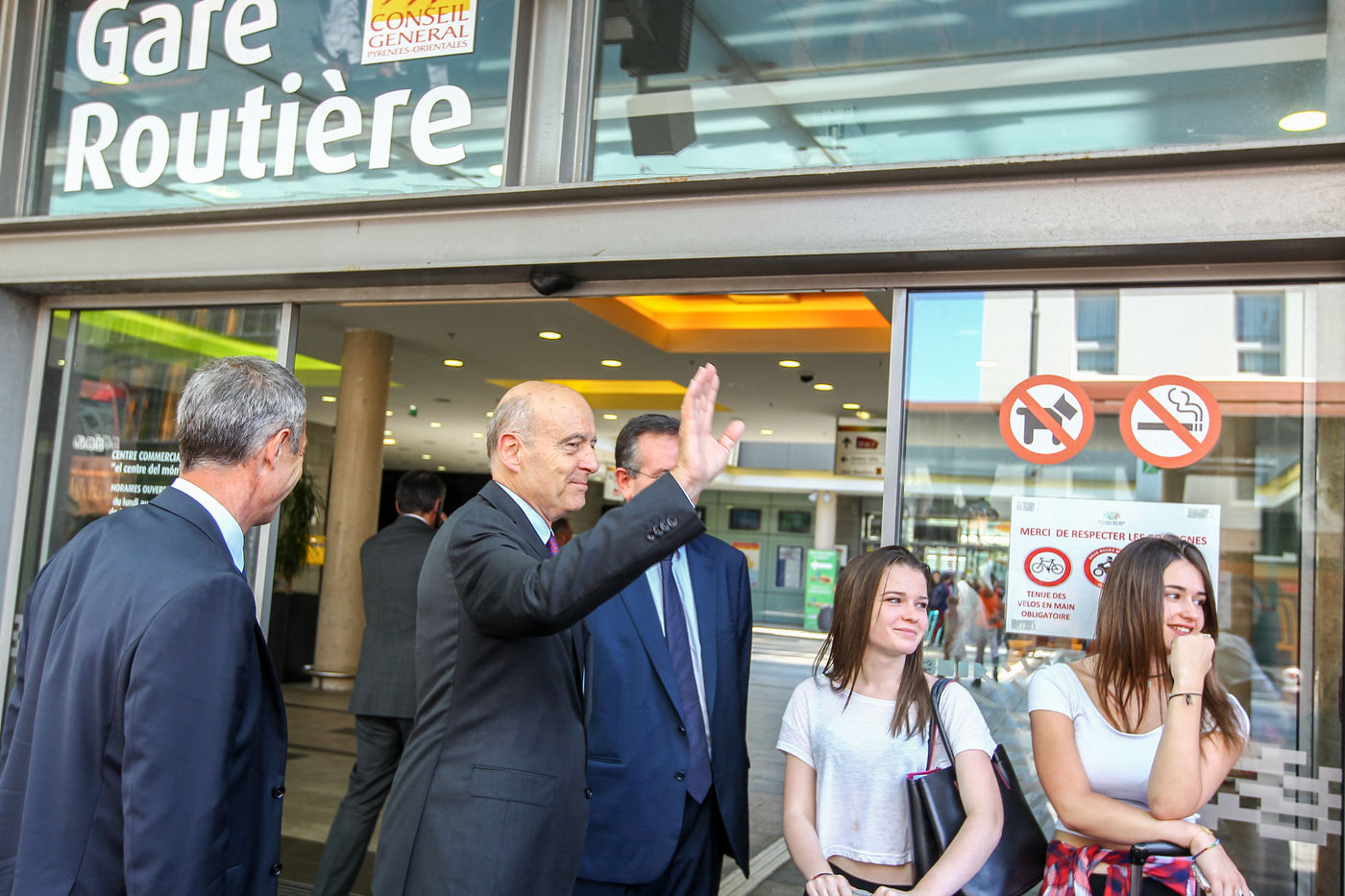 Alain Juppé, Maire de Bordeaux et candidat aux primaires des républicains alors en campagne politique dans le département des Pyrénées Orientales.