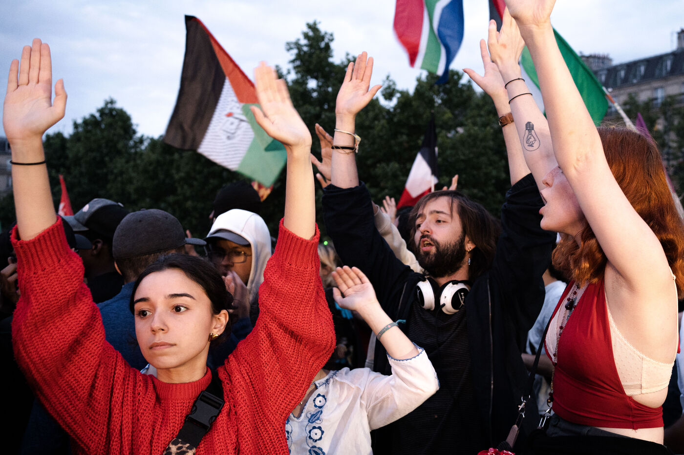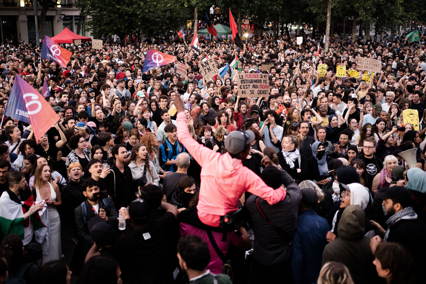 Suite au résultat du premier tour des élections législatives, le nouveau Front populaire a appelé à une manifestation sur la place de la république contre le partie d'extrême droite français, le rassemblement national.