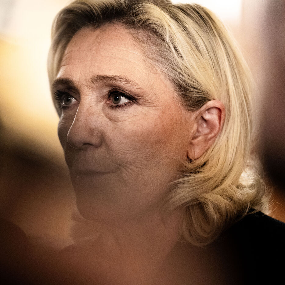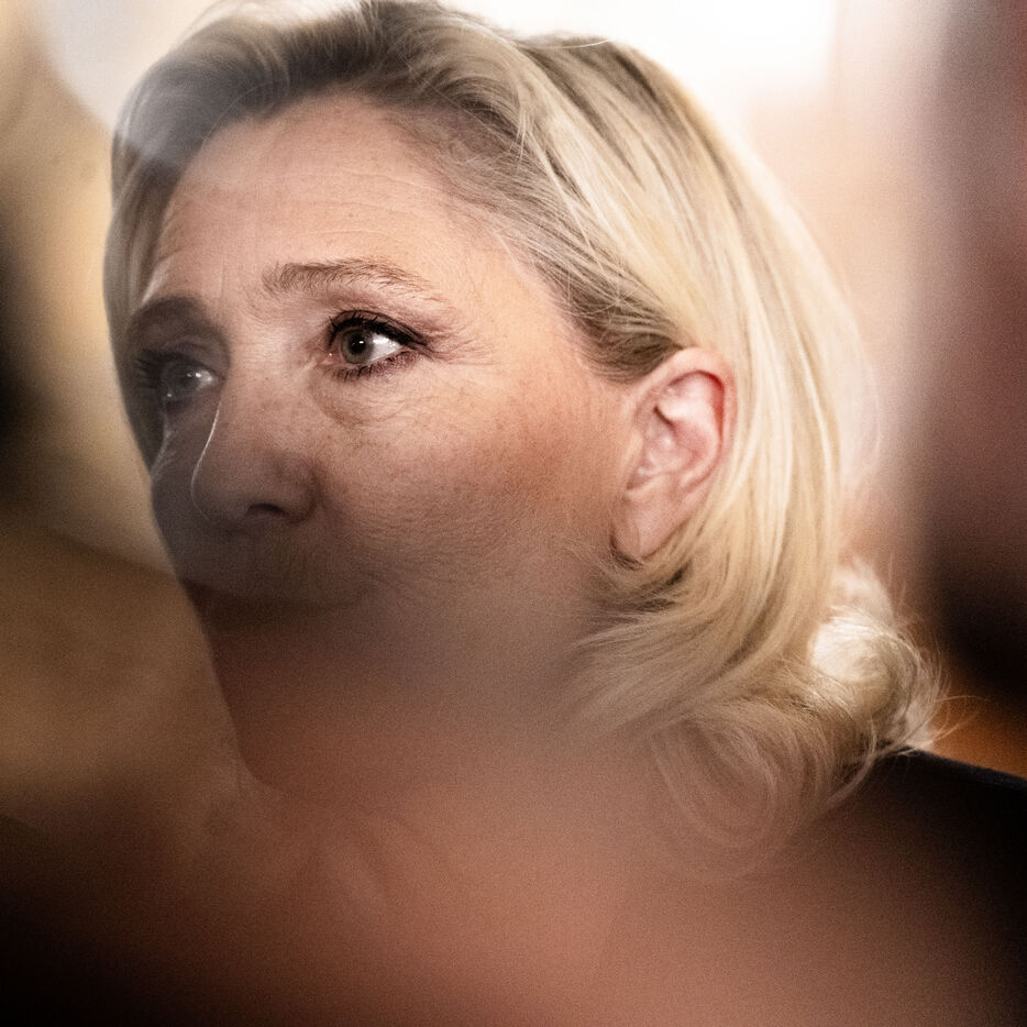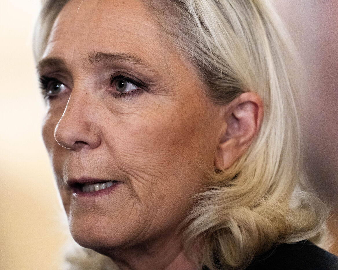 Marine de la Pen présidente du groupe du rassemblement nationale (RN) est interviewé avant le débat à l'Assemblée nationale sur la guerre Iran-Israël dans le palais bourbon.