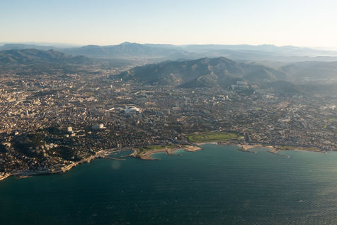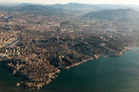 Aerial views of the city of Marseille from a London-Marseille flight on 3 December 2021.