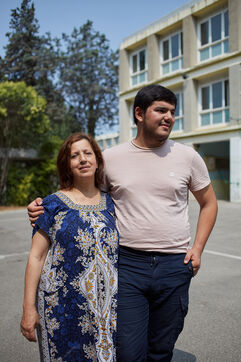 Amine Kessaci and his mother Ouassida at the Conscience association. After the death of his brother Brahim in a drug-dealing dispute in 2020, Amine Kessaci launched the Conscience association to help improve living conditions in the northern quarters of the city. Photography by Gregoire Bernardi / Hans Lucas