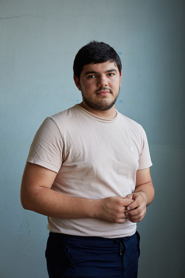 Amine Kessaci et sa mère Ouassida dans les locaux de l?association Conscience. Après la mort de son frère Brahim dans un règlement de comptes lié au trafic de drogue en 2020, Amine Kessaci a lancé l'association Conscience, pour aider à améliorer les conditions de vie dans les quartiers. Photographie par Gregoire Bernardi / Hans Lucas.