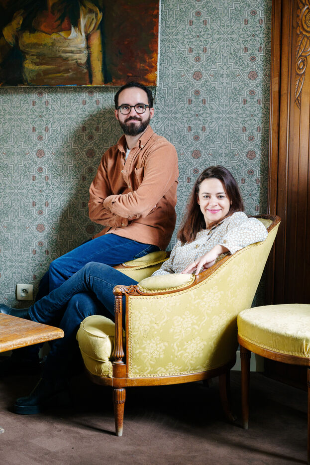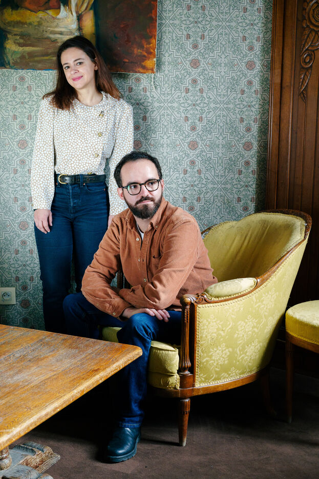Marseille, France, 14 janvier 2024. Portrait des réalisateurs français Hanna Ladoul et Marco La Via a Marseille, France. Leur prochain film Au fil des saisons avec Catherine Deneuve, Andrea Riseborough et Morgan Saylor sortira le 21 février 2024. Photographie par Gregoire Bernardi / Hans Lucas.
