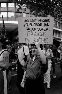 Marseille, 6 July, 2024. Several thousand people gathered for the Marche des Fiertés, which started at the Palais Longchamp and ended at the Vieux-Port. The date for the event had been set months ago, to mark the end of Pride Month, which celebrates the LGBT+ (lesbian, gay, bi, trans) community. The Marseille Pride was therefore held on the eve of the second round of the early parliamentary elections. The slogan chosen this year was "Shout out the silence", to assert their rights and denounce discrimination. Photography by Gregoire Bernardi / Hans Lucas.