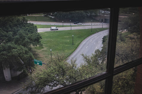 Through this series of photographs taken on April 30, 2019, the atmosphere of this memory-laden site is captured with precision. From the heights of Reunion Tower, the view embraces the city and the place where everything unfolded. The Texas School Book Depository, now transformed into a museum, recalls the presumed position of the shooter, Lee Harvey Oswald. A few meters away, a simple white cross on the asphalt marks the exact spot where Kennedy was fatally shot, while an American flag fluttering on a fence seems to stand guard over this past, frozen in history.