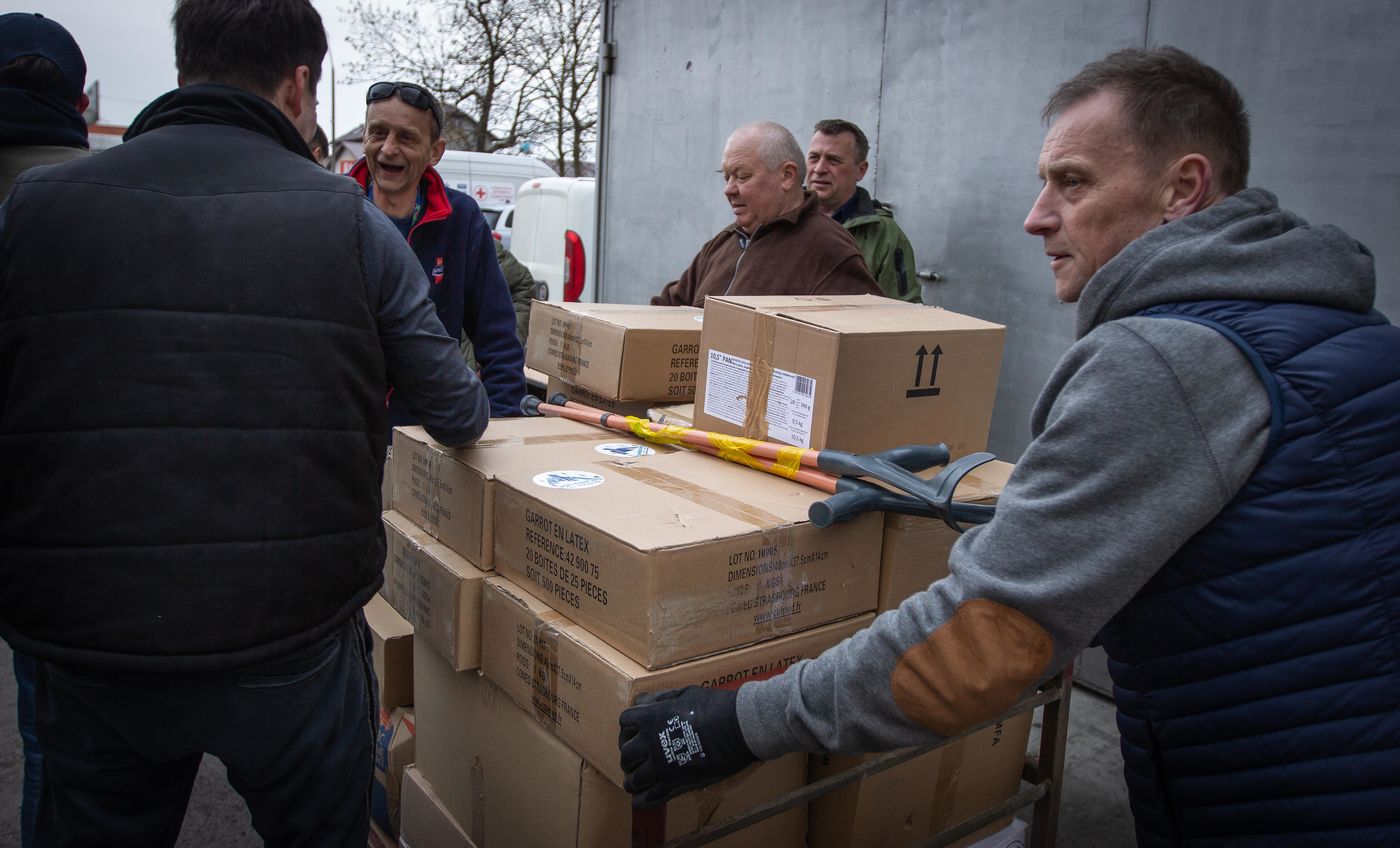 Each week-end, "Solidarité Lyon Ukraine" and the Red-Cross organize convoys to bring medical aids and supplies to the Ukrainian border that will be then dispatched in the frontline. While coming back, those convoys bring back refugees to France who will be welcomed by family shelters. The association has brought more than 500 people since the beginning of the war.