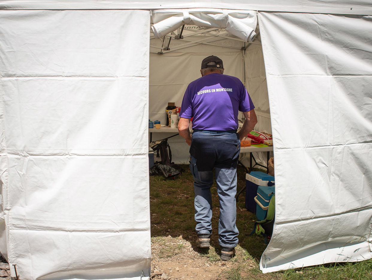 The CASM is engaged in a first aid station for the Maxirace. Because of its mountain qualification, the group of rescuers has positioned itself in a diificult access zone where only helicopters (if weather conditions are ok) and the human force via Franco gurney permit an extraction. The MaxiRace is a large-scale trail race whose original route includes the tour of Annecy lake over 88km. Many other races have been added and in total, approximately 5000 runners will take the start that weekend.