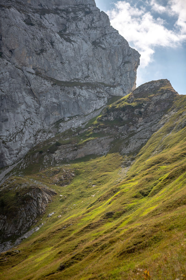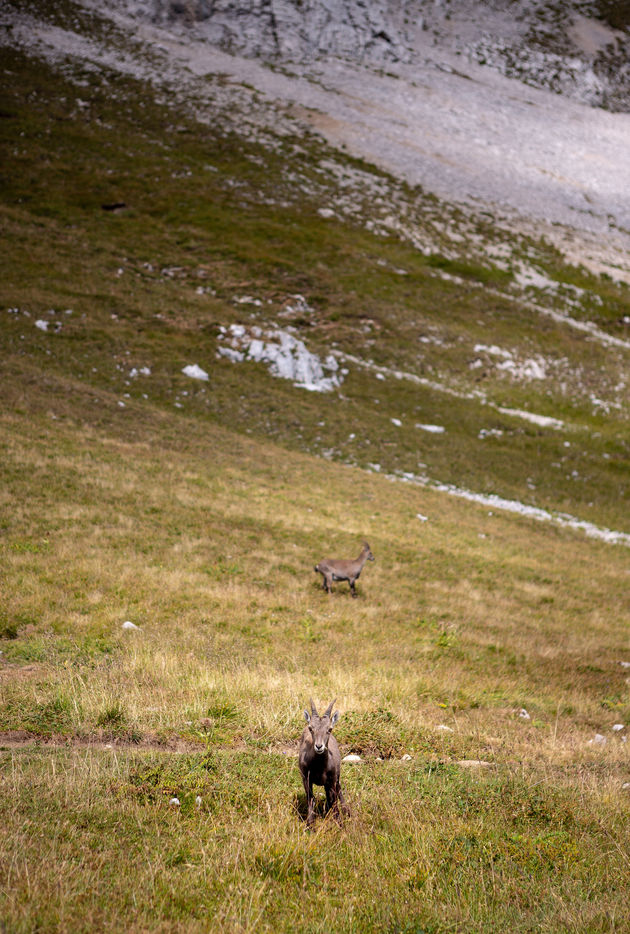La voie royale, esthétique, entière, exigeante et engageante pour rejoindre un sommet. Le fauteuil de la Tournette par sa magnifique arête ouest, sous l'oeil curieux des quadripèdes autochtones.
