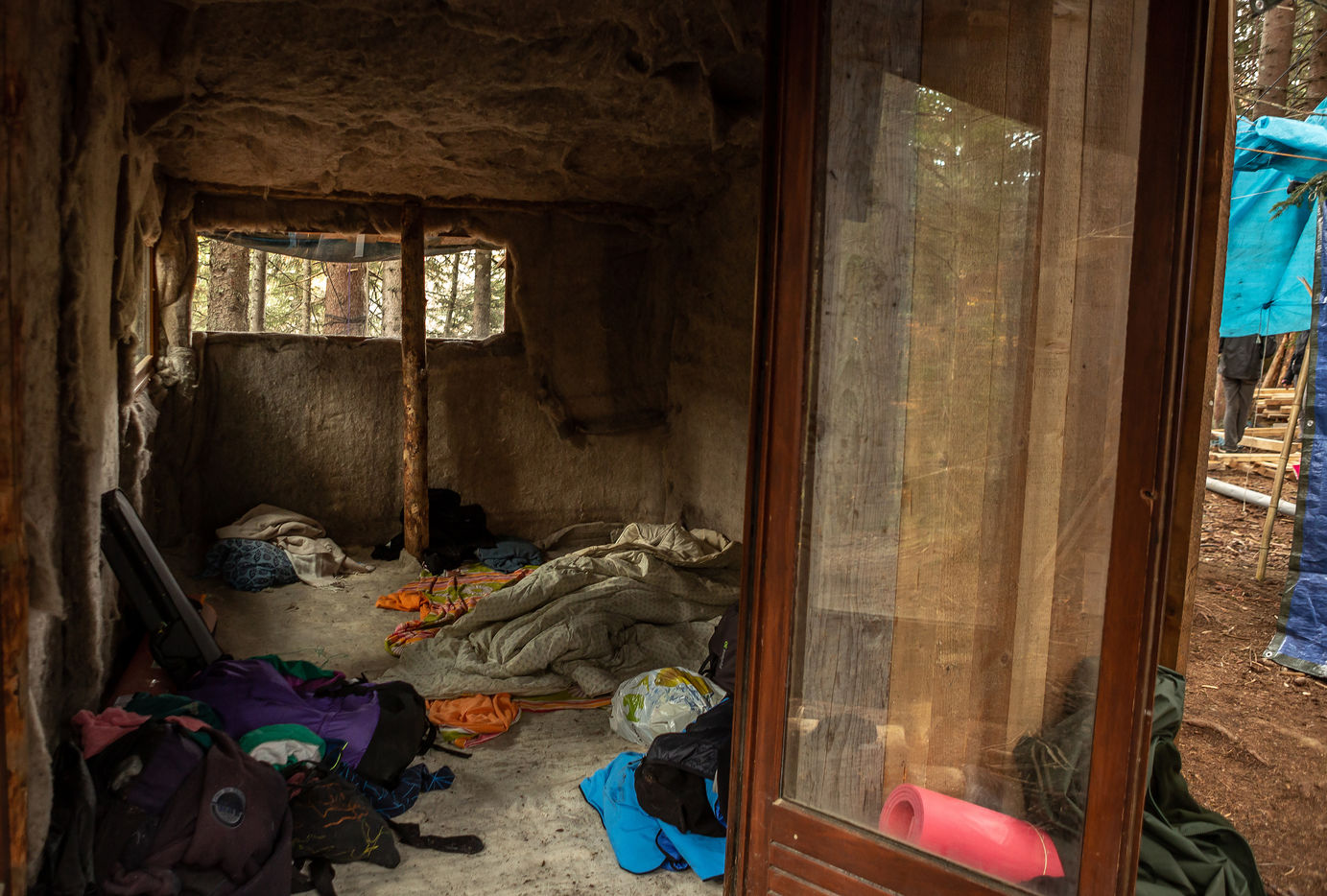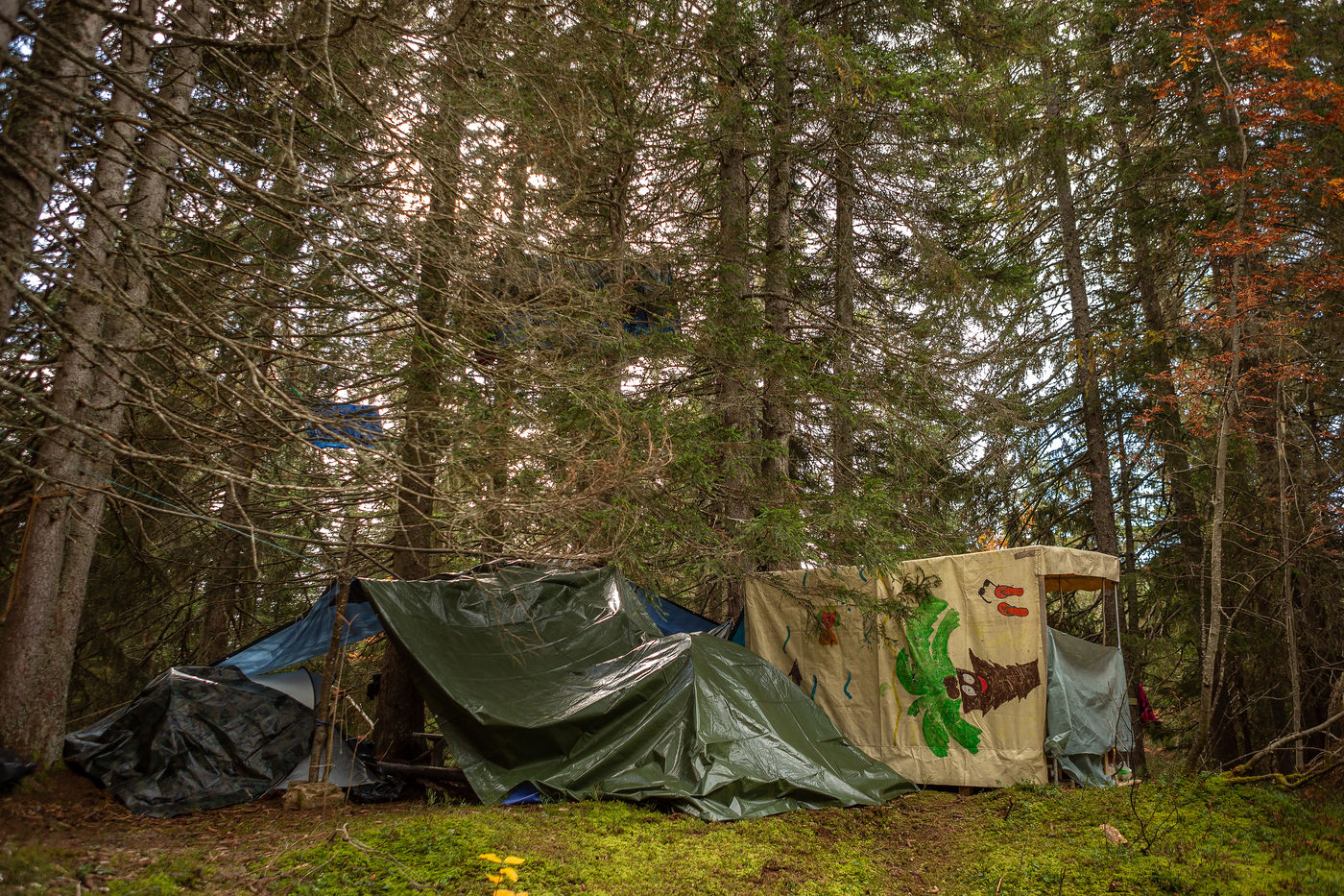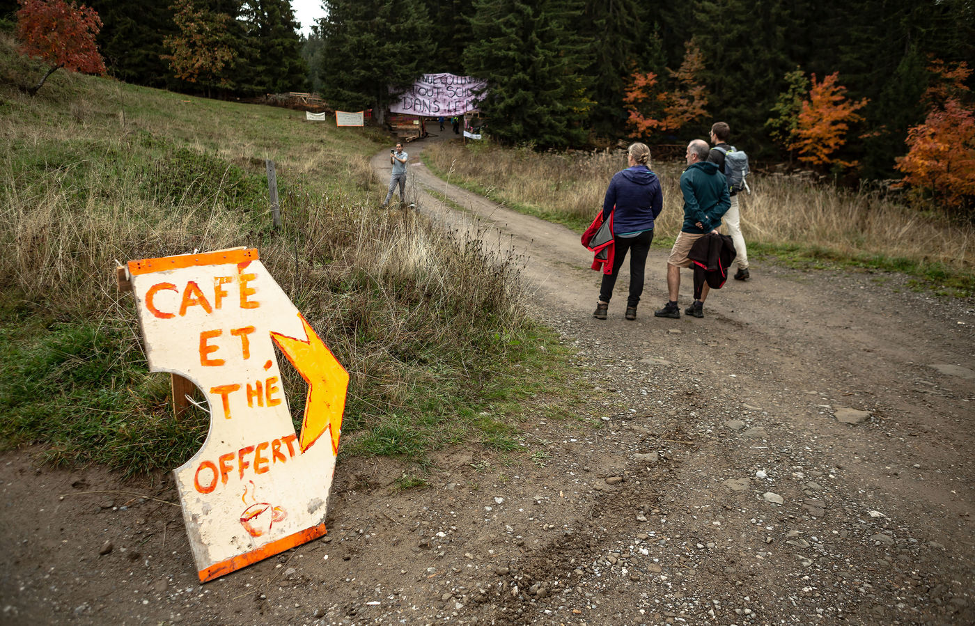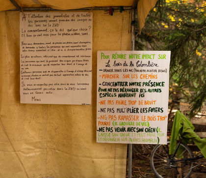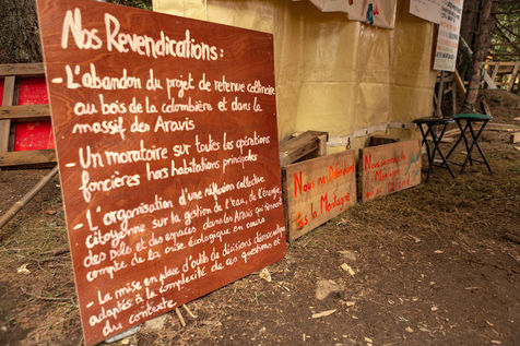 In the Colombière wood, on the plateau of Beauregard, a ZAD from Exctinction Rebellion acitivists is occupying the forest. It intends to fight against the destruction of the natural place because of the hill water reservoir project that should supply the local ski resort snow cannons. Illustrations.