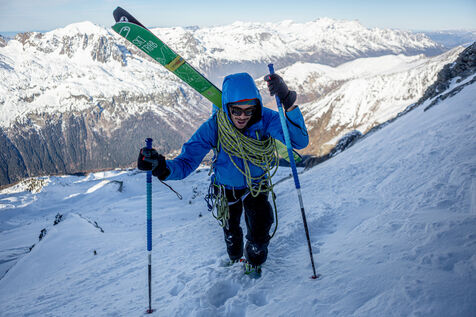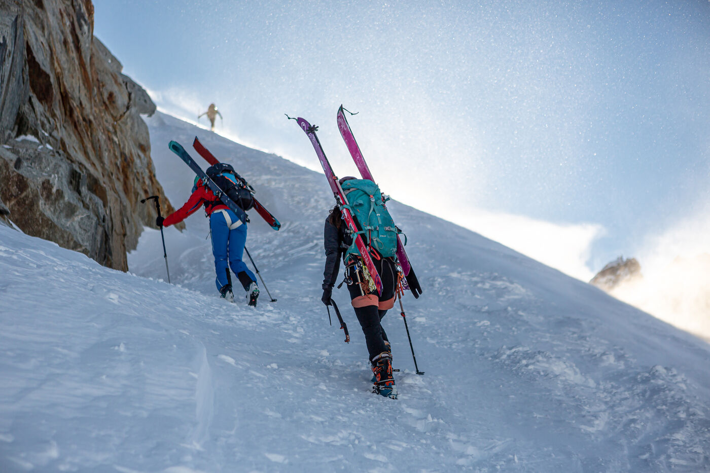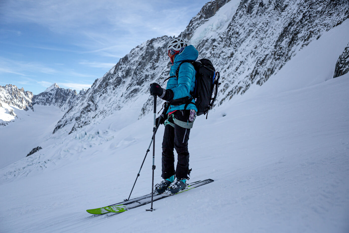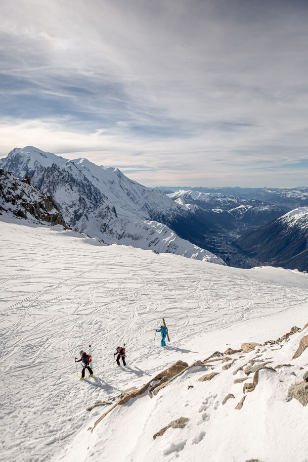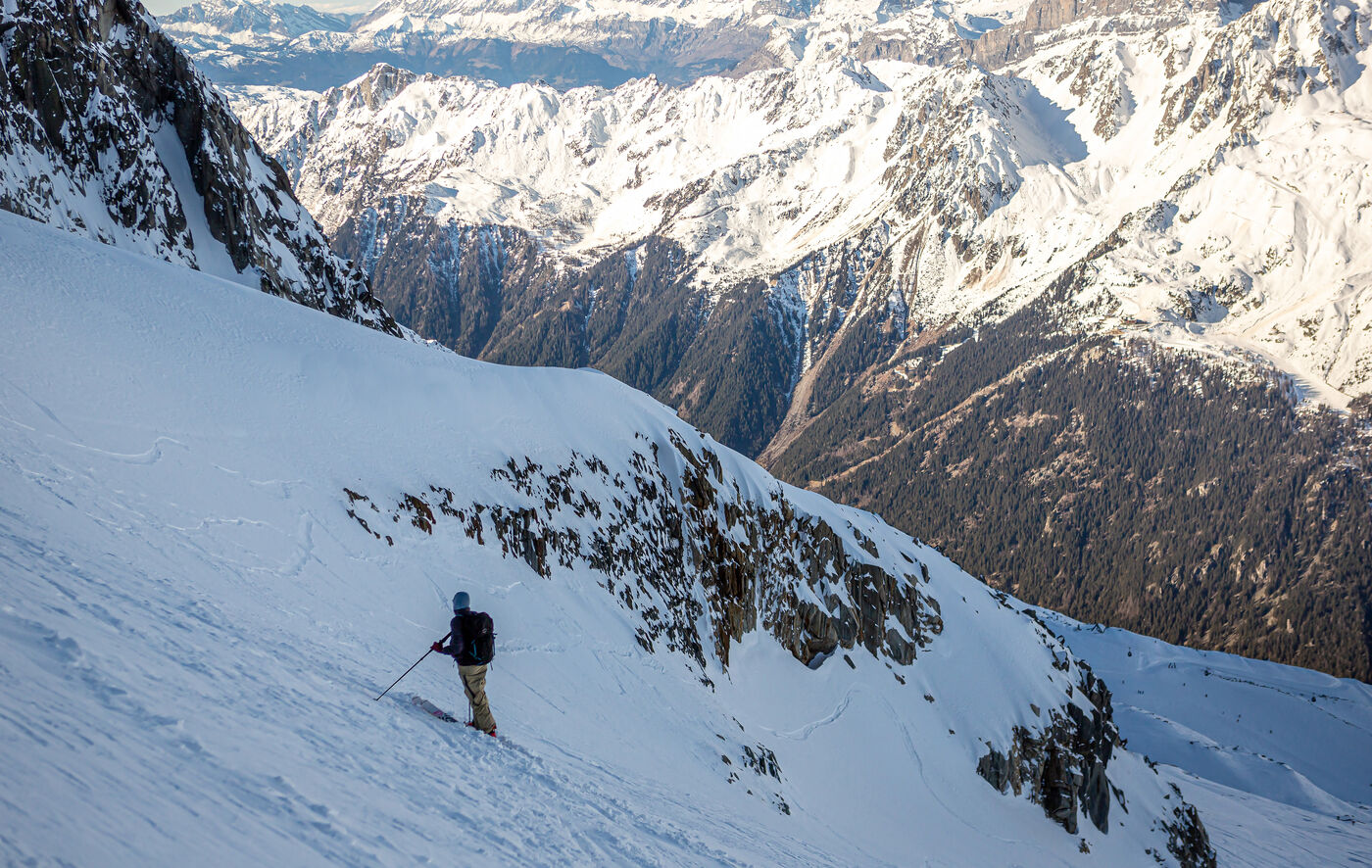 A daily ascent at the Grand Montets pass, near the "Petite Verte" in the Mont-Blanc mountains.