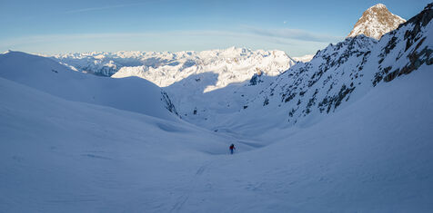 Climb the Ruitor, meter after meter, alone and silent, a dark and icy night, accompanied by the awakening of the sun. Ski ascent by the glacier du Grand.