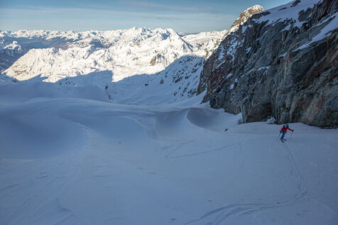 Gravir le Ruitor, mètre après mètre, seuls et silencieux, d'une nuit noire et glaciale, accompagnés par le réveil du soleil. Ascension à skis par le glacier du Grand.