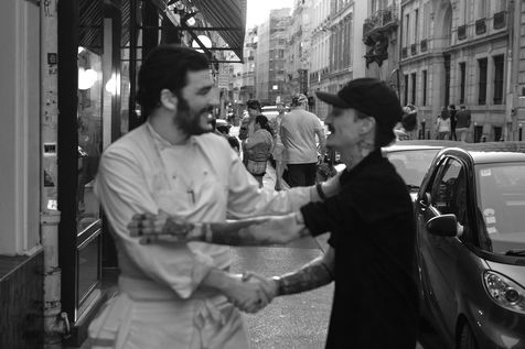 Shooting de la rencontre entre les jeunes chefs Sanchez et Touitou dans leurs établissements parisiens respectifs: Neso, Neso 2, Vivant et Déviant.