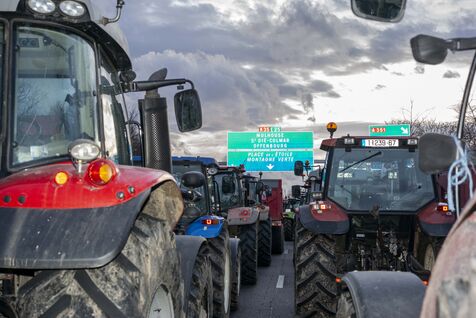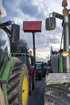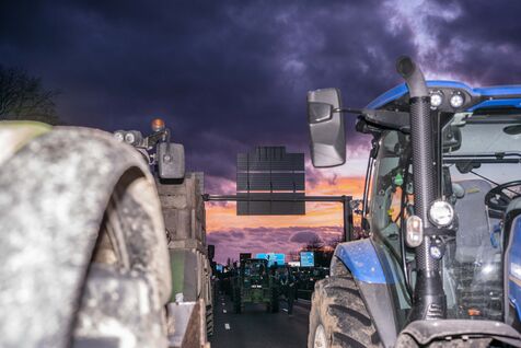 Blockade of the A35 near Strasbourg by farmers from Bas-Rhin (67) on Wednesday, January 24, 2024. Organizers (FDSEA, attended by 67 president Franck Sander) announced that 500 tractors and as many farmers had come to spend the night on the road, to mark their disagreement with the government and underline their concerns about the future of their profession.