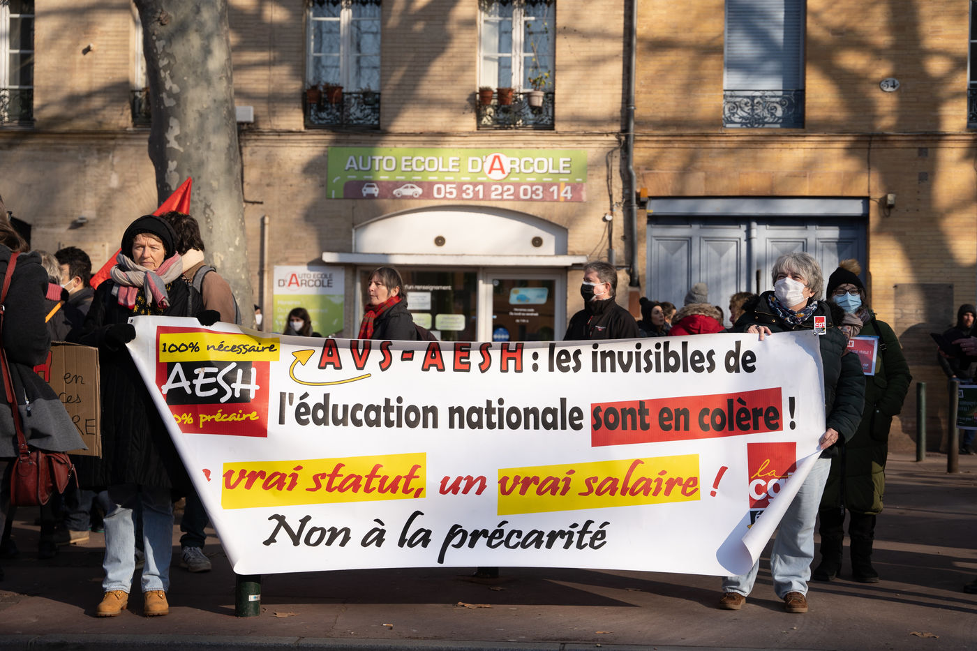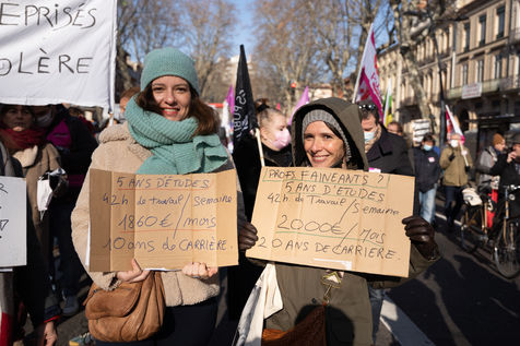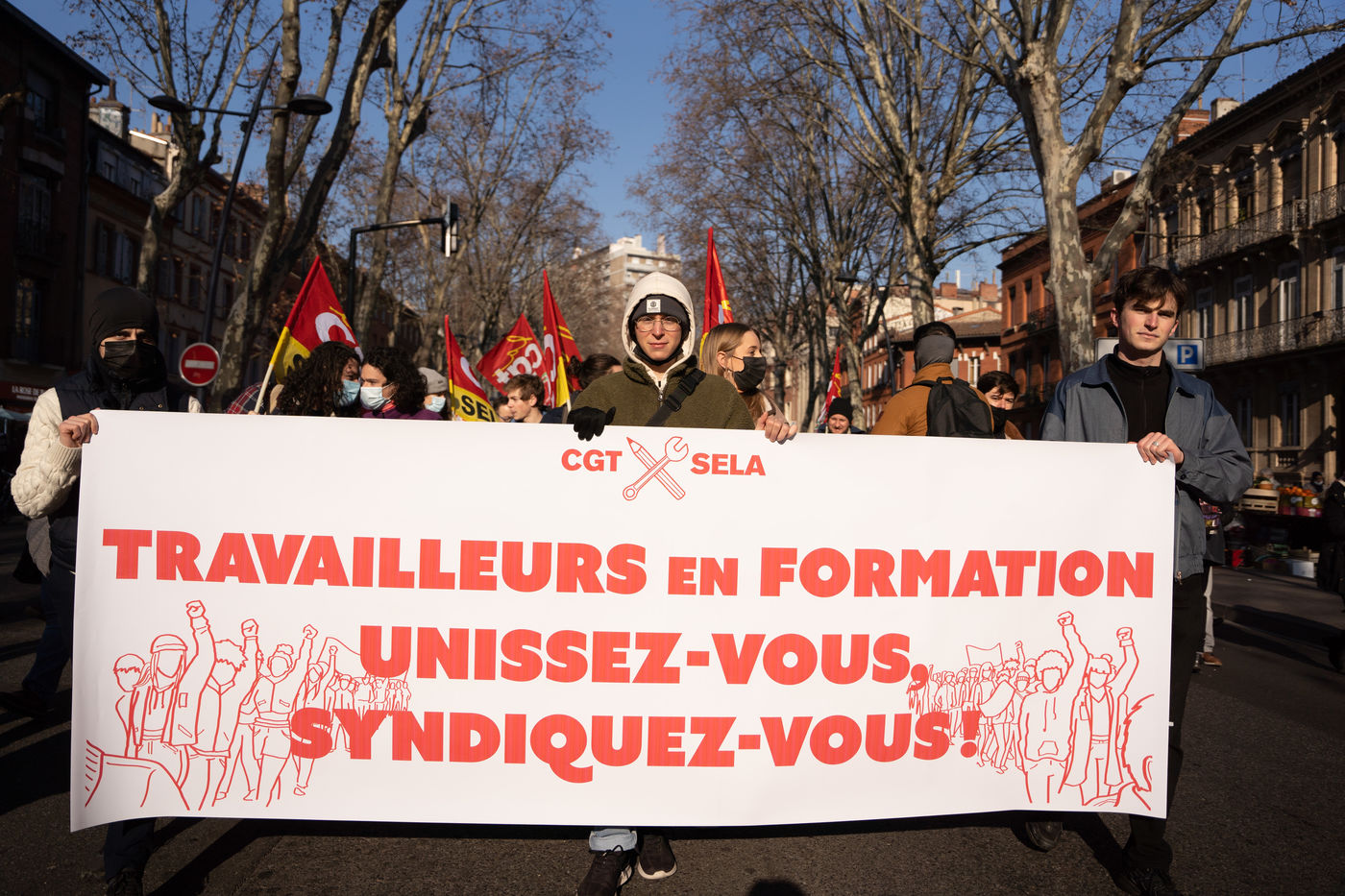 Le 27 janvier 2022, les manifestant?e?s toulousain?e?s ont fait clairement connaître leurs revendications à l?occasion de la journée interprofessionnelle pour la hausse des salaires organisée à l?appel des organisations syndicales CGT (Confédération générale du travail), FO (Force ouvrière), FSU (Féderation syndicale unitaire) et Solidaires.