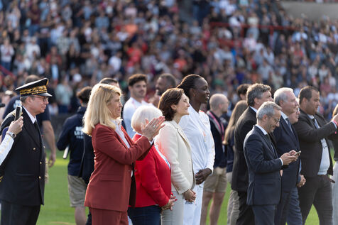 The Olympic flame passed by Toulouse on its way to Paris. Celebrities such as the local rappers Big Flo and Oly, the rugbymen Vincent Clerc, Emile et Romain N'Tamac as well as ordinary people carried the flame from Place Satin-Cyprien all the way to the Stade Toulousain, where Antoine Dupont (rugby player France national team and in the Stade Toulousain) lit the olympic bowl in the presence of the Minister of Sports and Olympic Games Amélie Oudéa-Castéra, the Minister Delegate of the Minister of Interior and of the Minister of Ecologic Transition Dominique Faure.