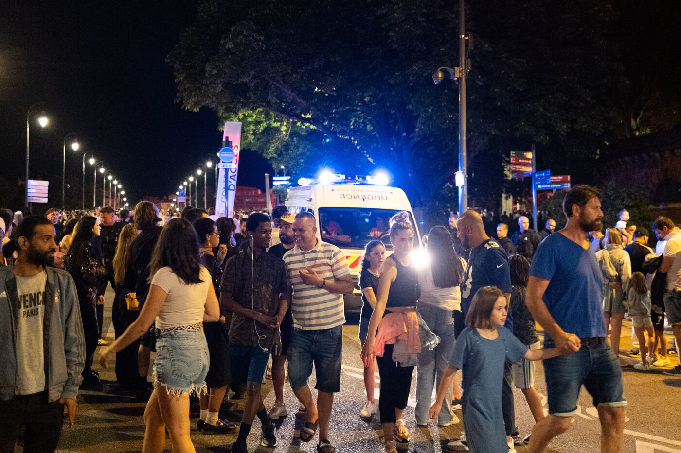 A dense crowd of onlookers gathered on the Garonne baks in Saint-Cyprien in order to attend the firework display on the eve on France's National Day.