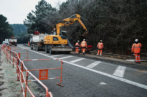 France, Soorts-Hossegor, 14 janvier 2025, Des militants écologistes ont investi des arbres dans la forêt entre Seignosse et Hossegor (Landes) pour protester contre le projet retenu par RTE (Réseau de Transport d'Electricite) pour son chantier d'interconnexion d'une ligne Très Haute Tension (THT) entre la France et l'Espagne. Quatre câbles seront enterrés sur 400km entre le nord Gironde et Bilbao. Dans les Landes, les riverains sont très inquiets des conséquences sur leur santé et l'environnement.