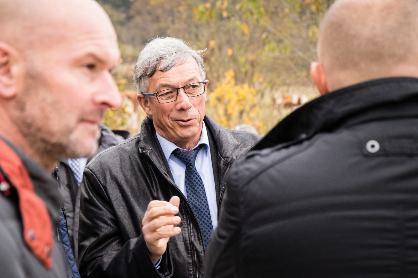 Didier Guillaume, ministre de l'Agriculture en visite sur l'explotation de Thierry Mourot dans les Vosges à Moncel-sur-Vair.