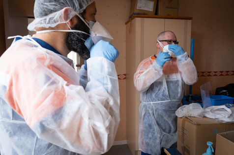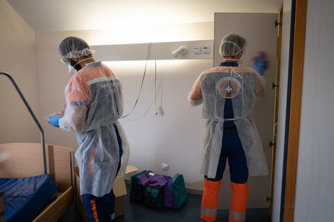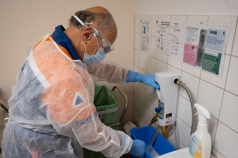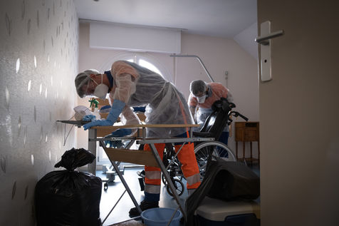 At each death in the EHPAD, the volunteers of the Protection Civile des Vosges completely disinfect the resident's room. Each personal item is then scrupulously cleaned to be later returned to the family of the deceased. The furniture is also completely disinfected as well as the walls and floor of the room. The protocol takes place in two stages: a first complete disinfection which can last several hours, then, 24 hours later, the volunteers of the Civil Protection carry out a second complete disinfection of the room.