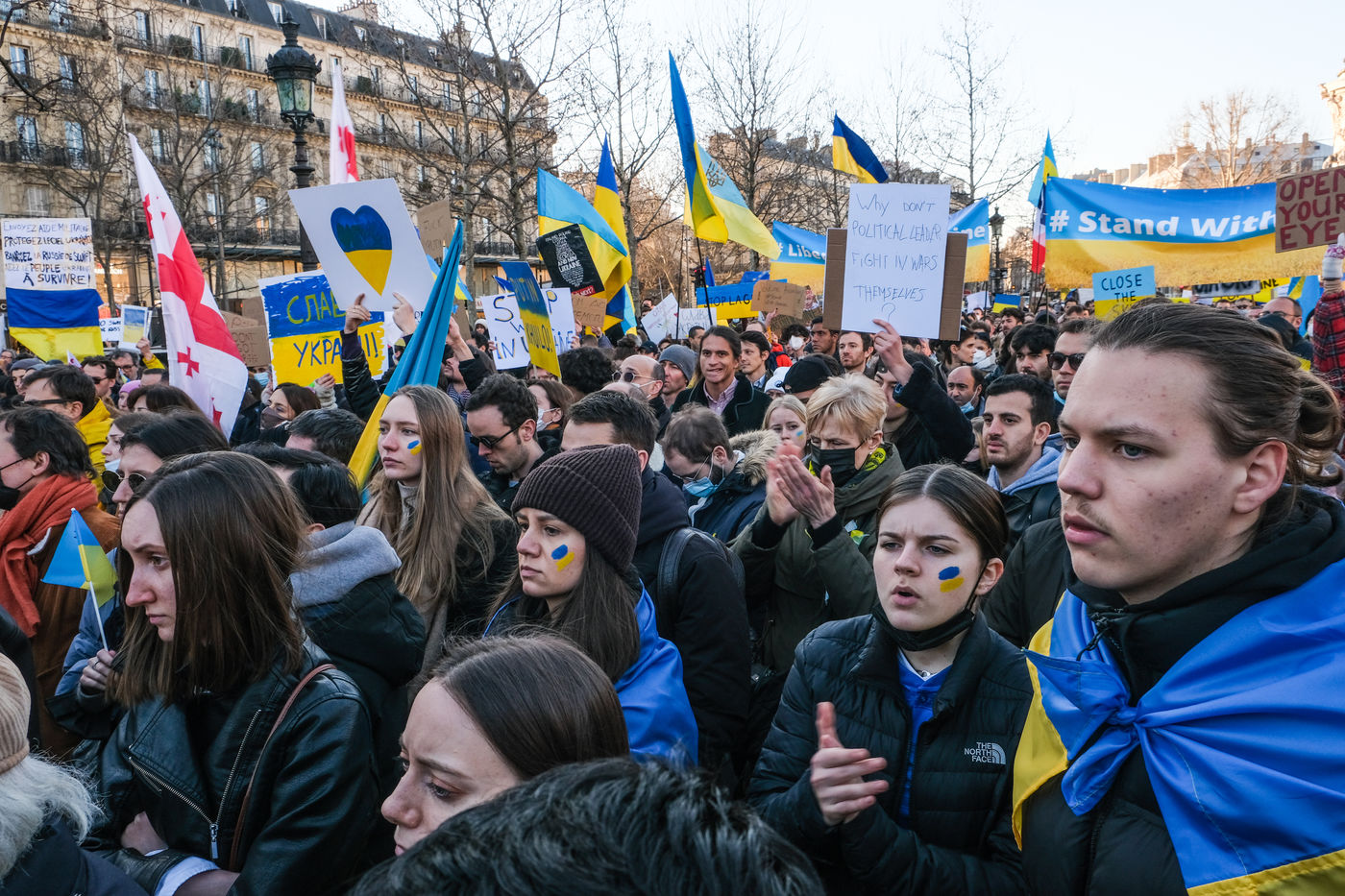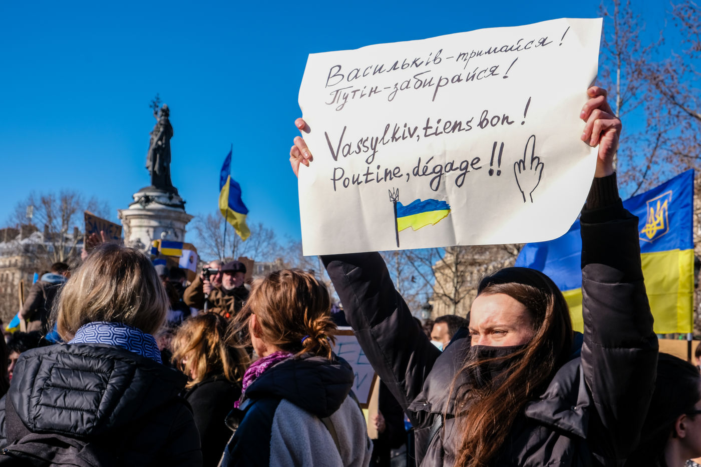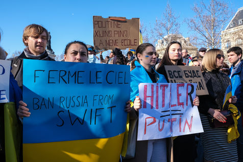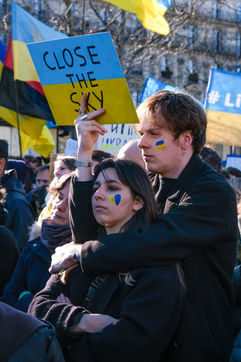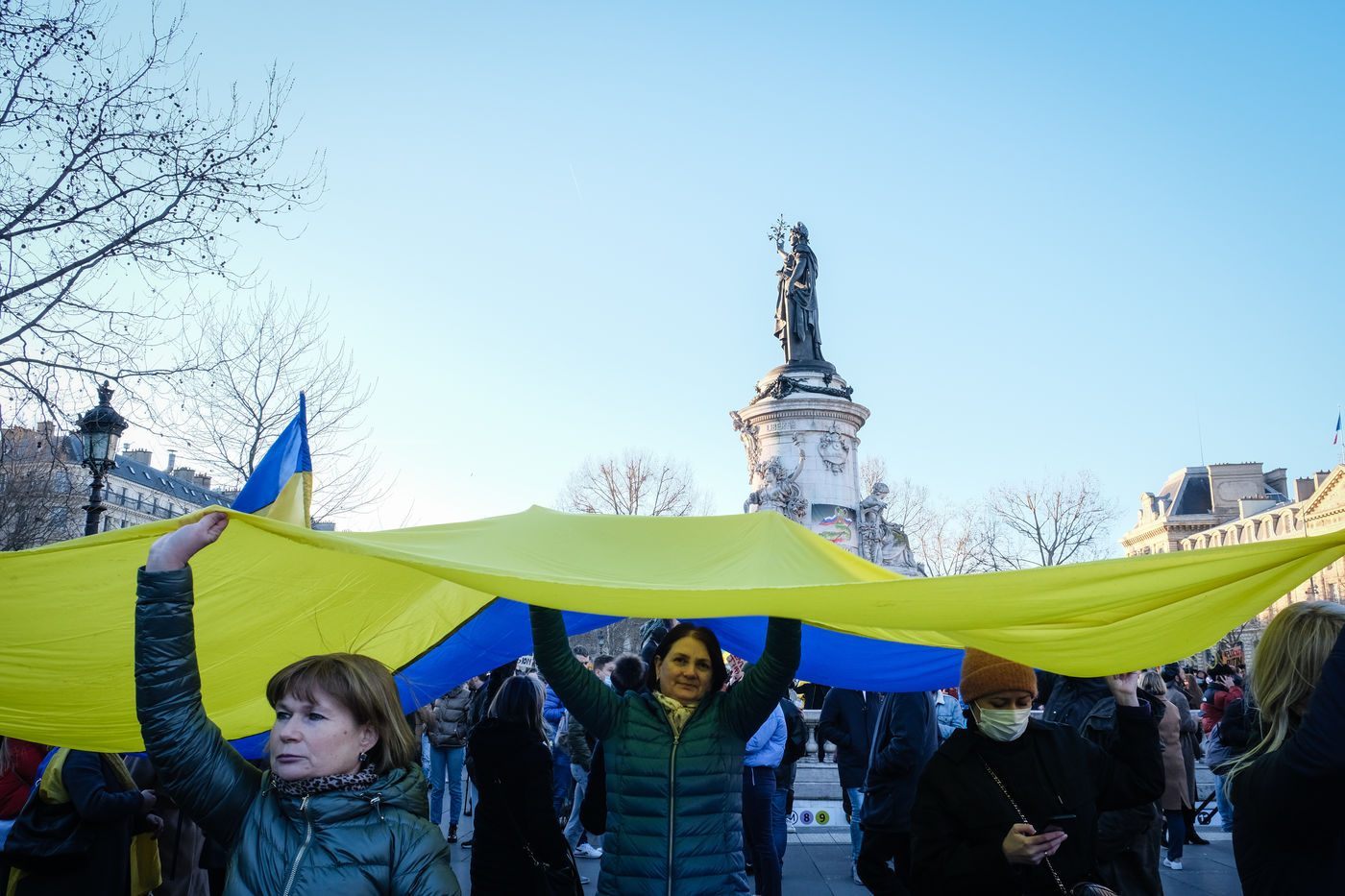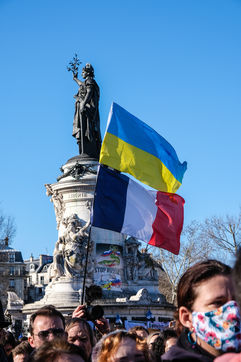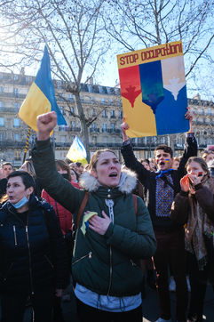 Rally in Paris at Place de la Republique in support of the Ukrainian people.