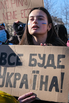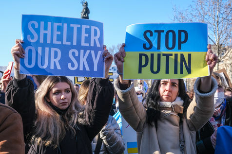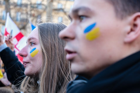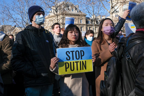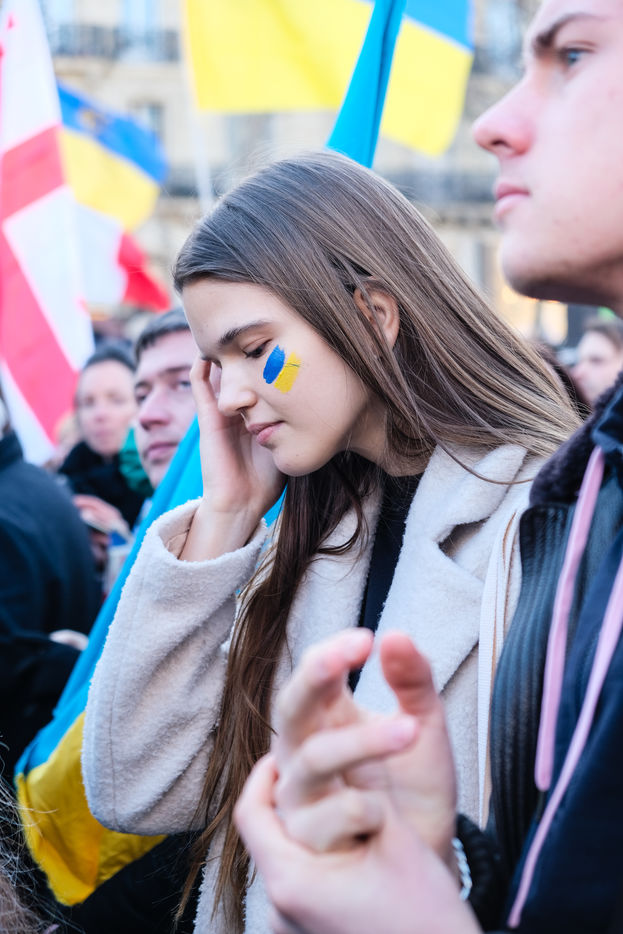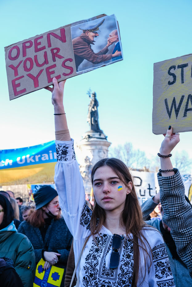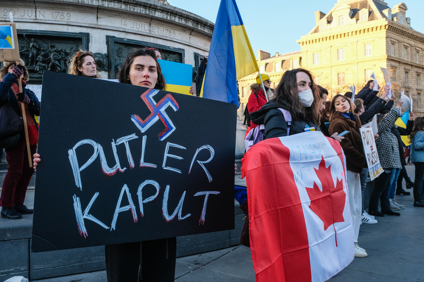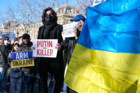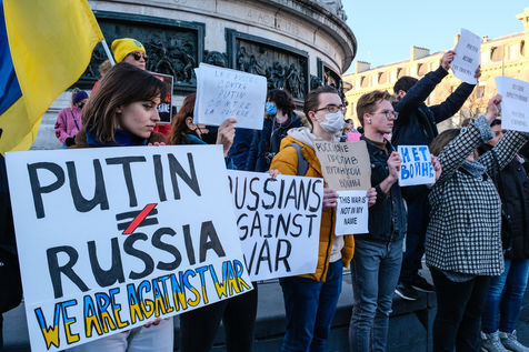 Rally in Paris at Place de la Republique in support of the Ukrainian people.
