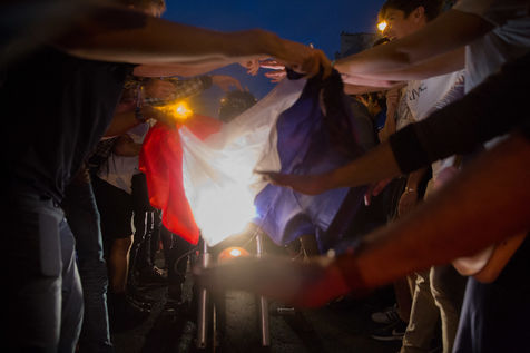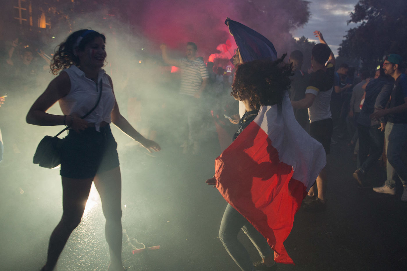 French citizens celebrate the victory of French soccer team in the street of Paris. French won Belgium during the semi-final of Russia world cup 2018.