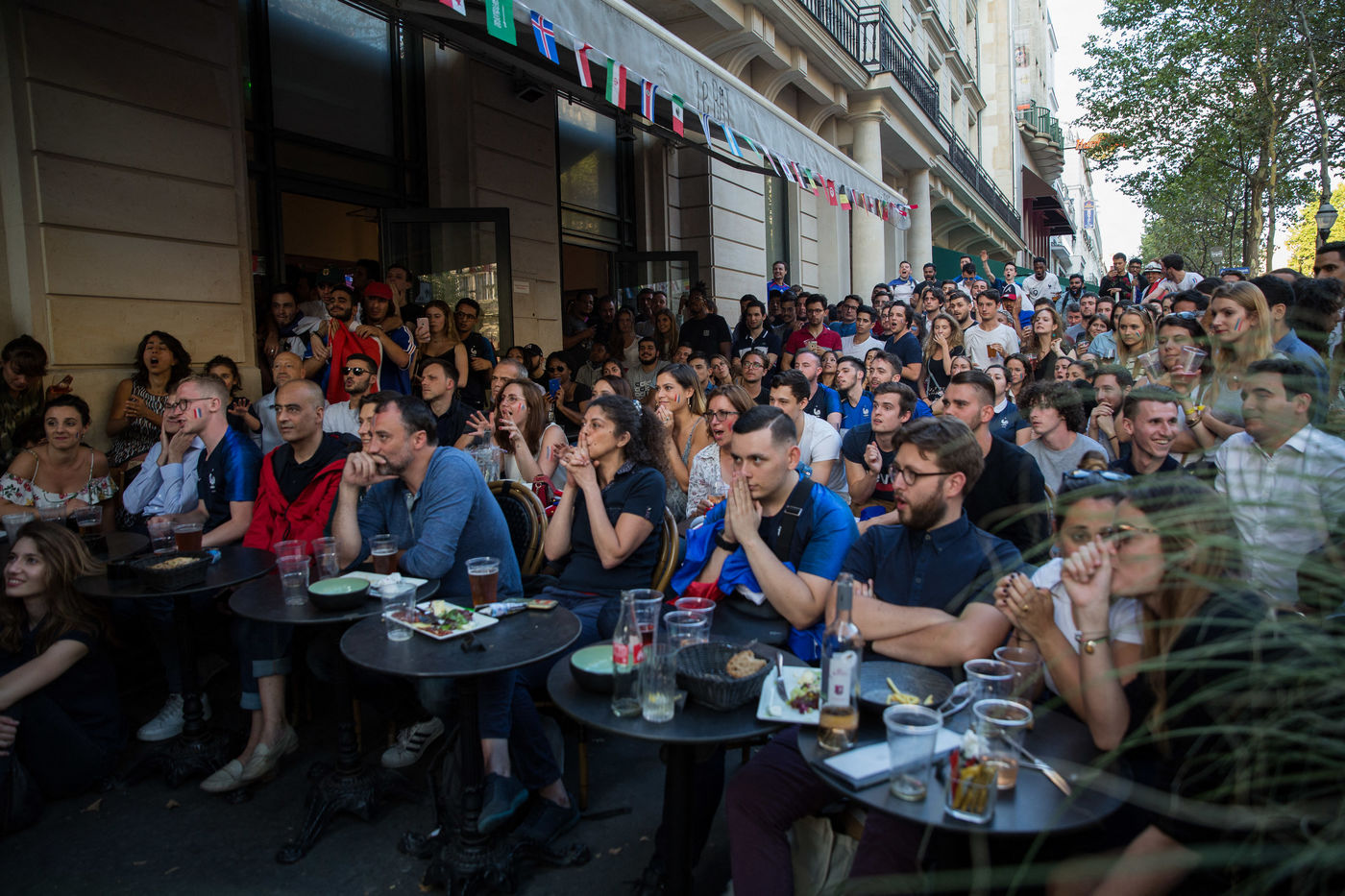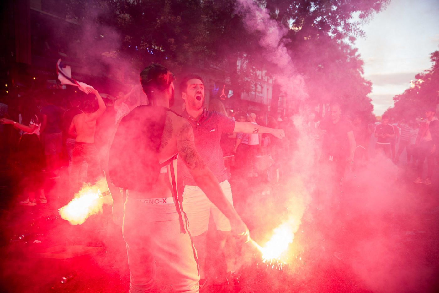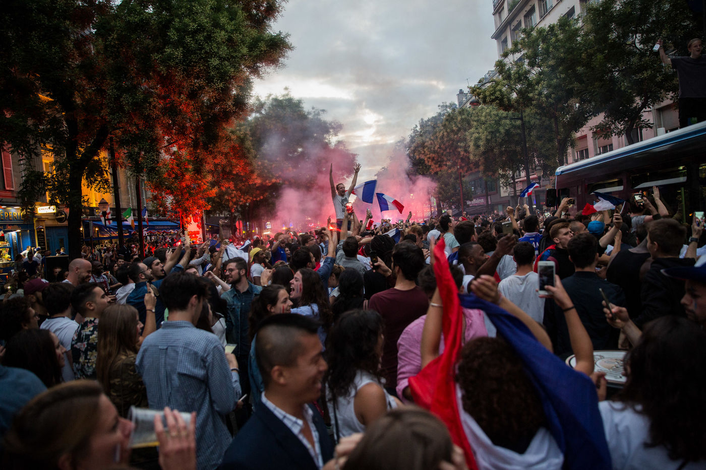 Les Francais sont descendus dans les rues de Paris le mardi 10 Juillet pour regarder le match de la demie-finale de la coupe du monde 2018 en Russie. Le match opposait La France a la Belgique. La France a gagne 1-0 avec un but de Samuel Umtiti. Des liesses de joies ont explosees partout dans la ville apres la vitoire de l'equipe de France