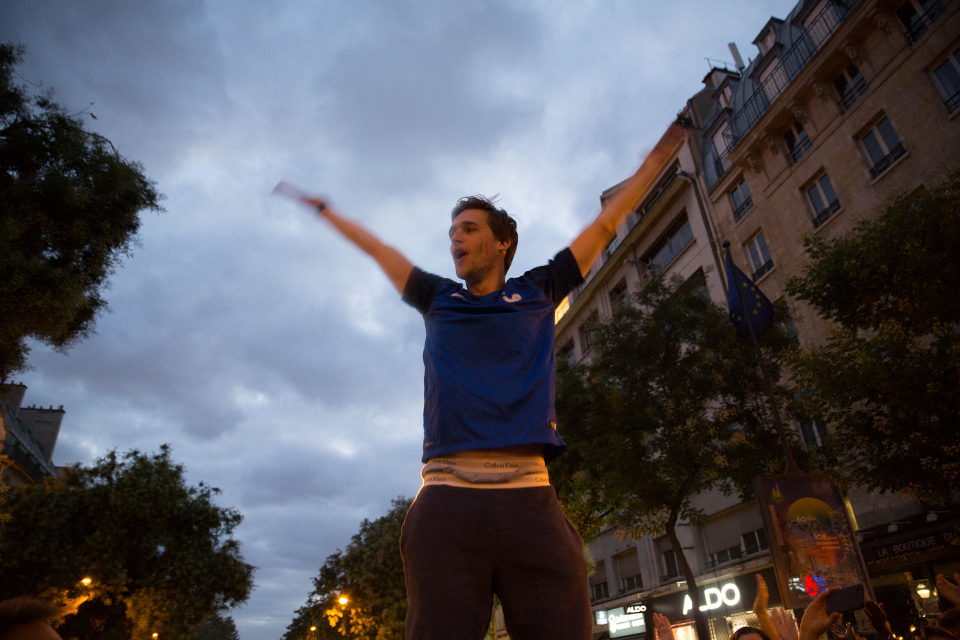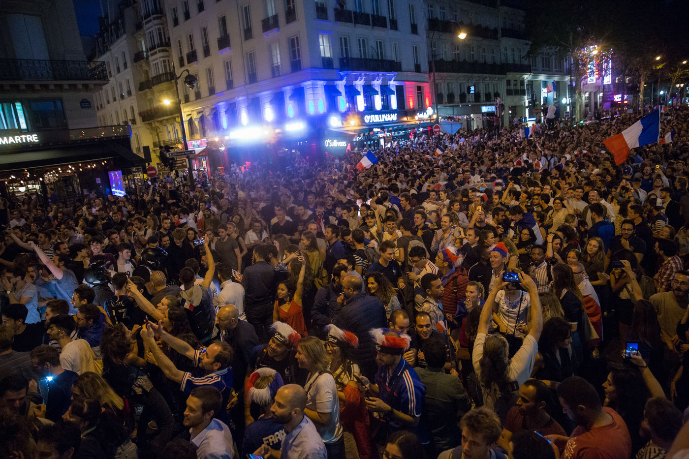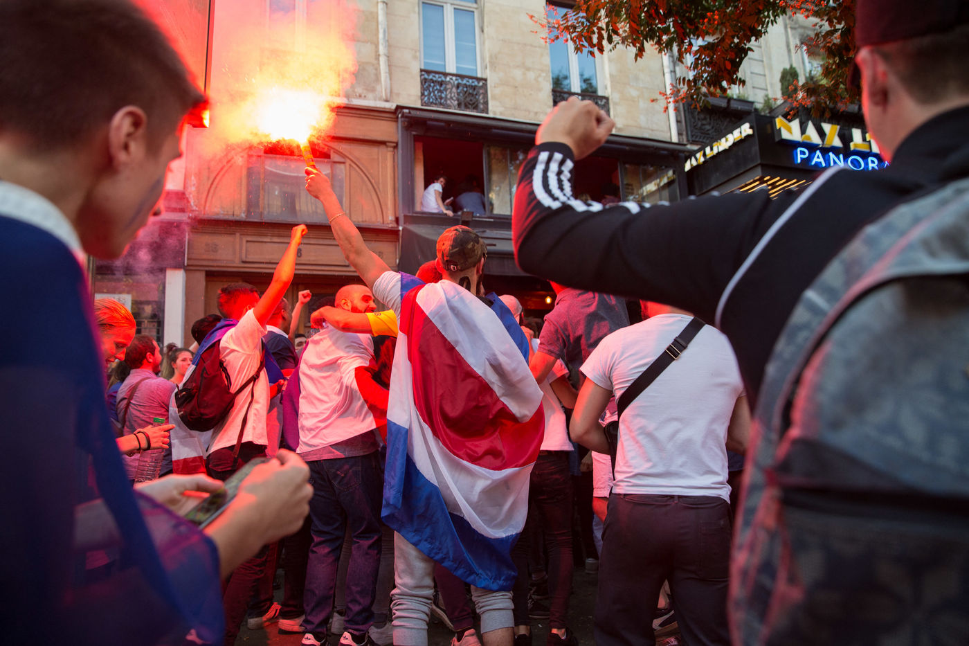 Scenes de Joie dans Paris apres la qualification pour la finale de la coupe du monde de Russie
