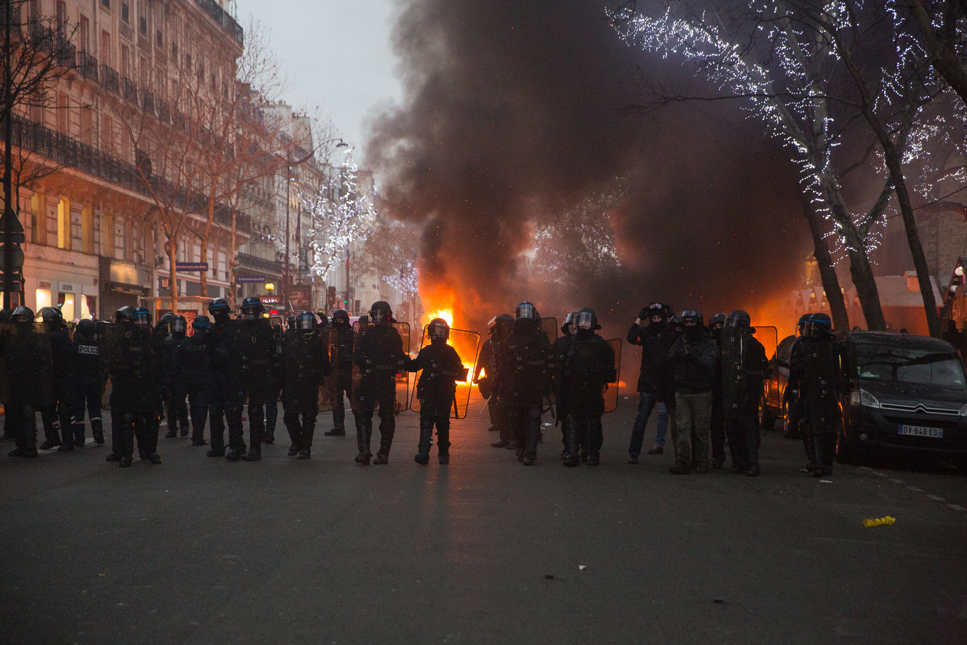 First day of protest for the year 2019 and 8th saturday of prostest in Paris on January,5th 2019. Clashes between demonstrators and police during this demonstration.