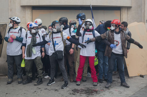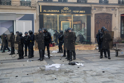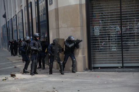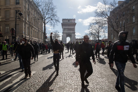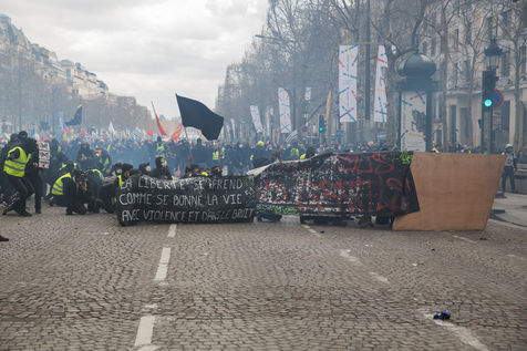 Violent clashes between demonstrator and polcie force during the round 18 of Yellow vests demonstration on 16th March 2019 on Champs Elysees avenue in Paris.