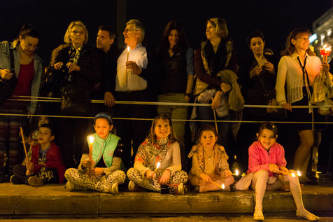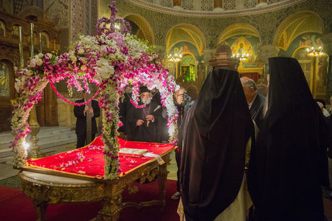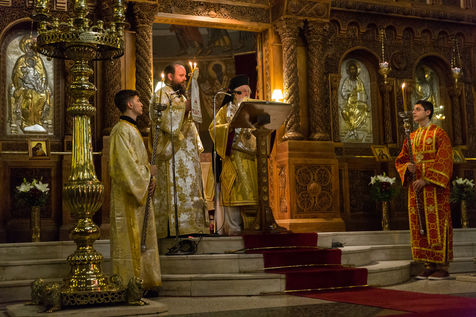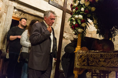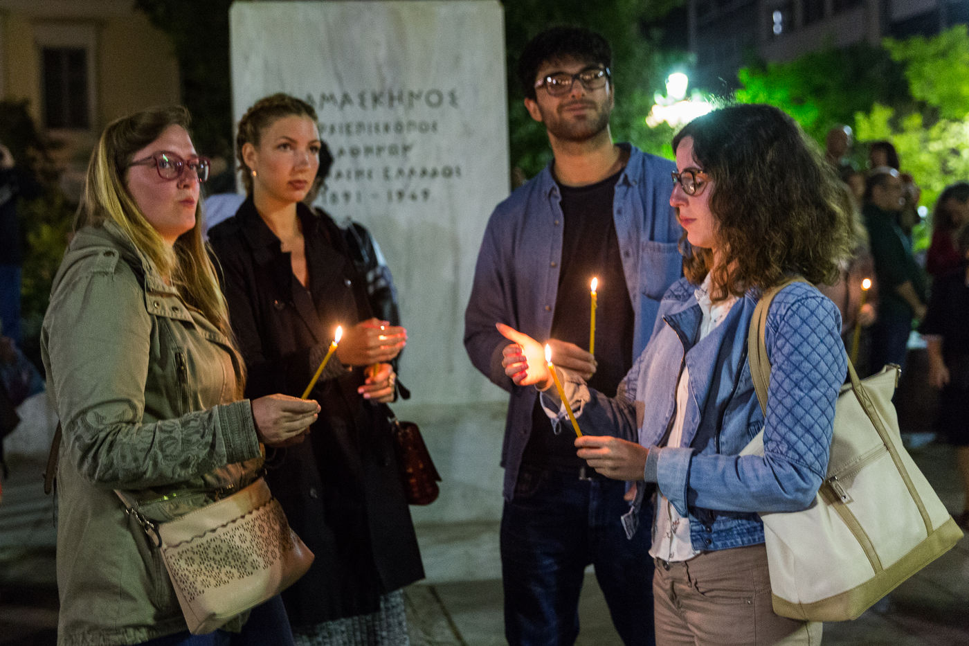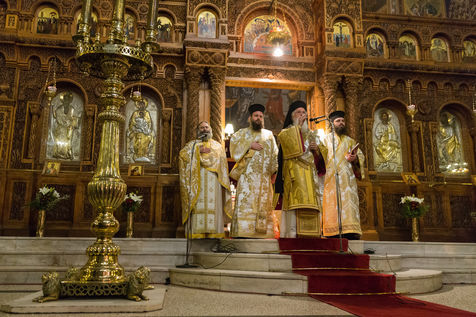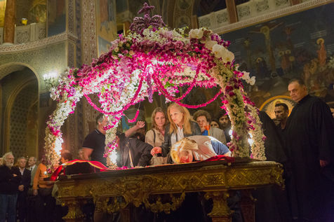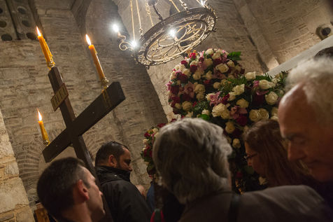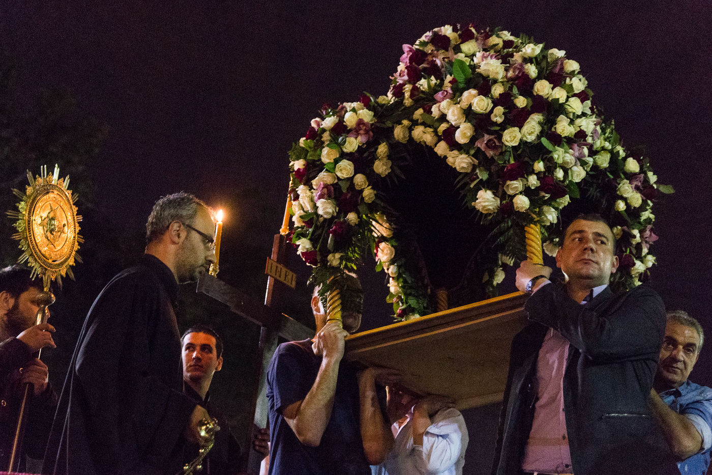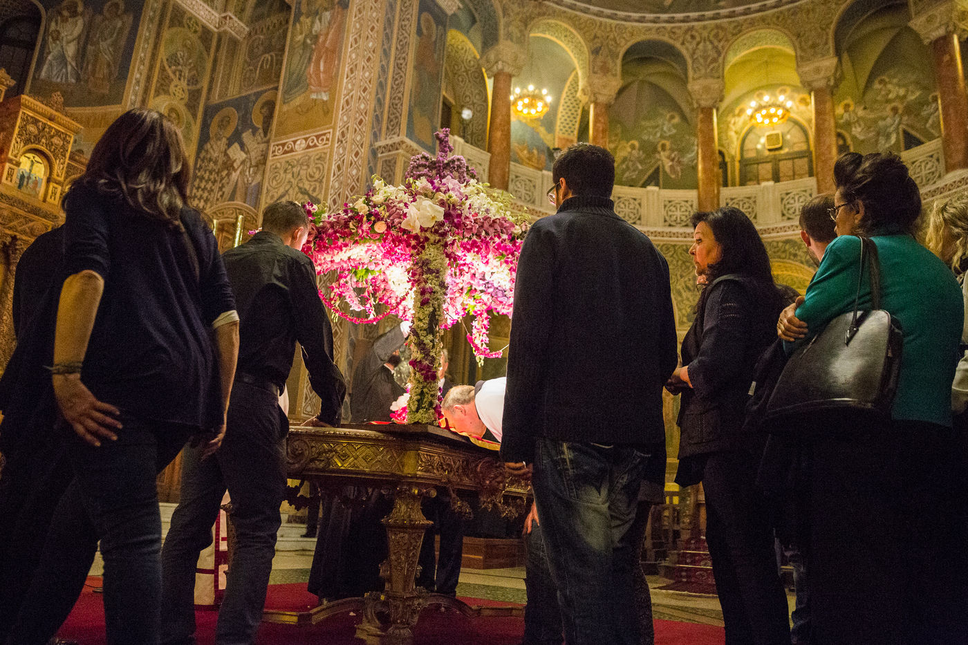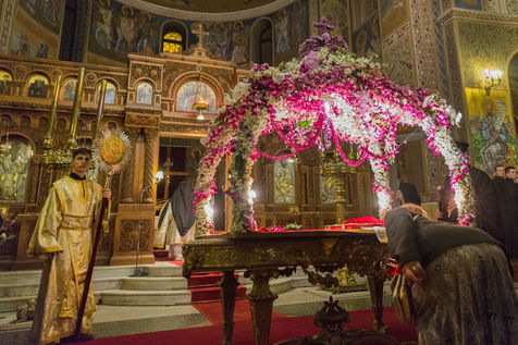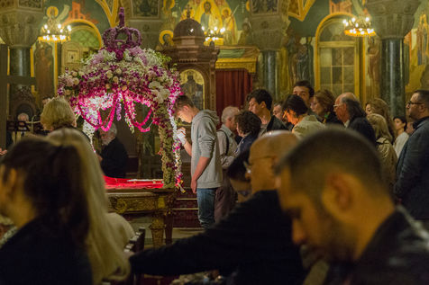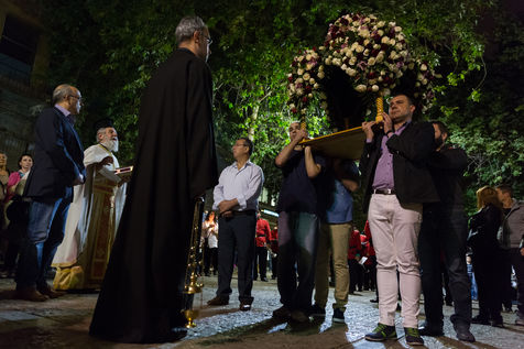 Priests and Orthodox Christians participate in the procession of the Epitaph in center of Athens, on Good Friday.