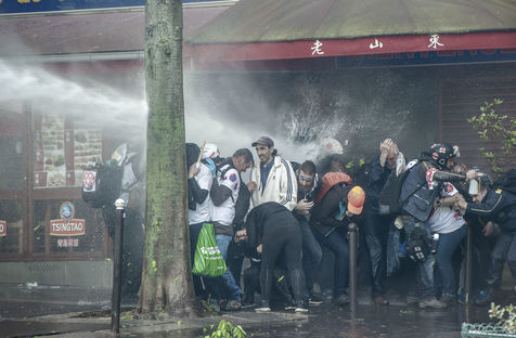 During the parade on 1 May 2019, numerous disorders, which at times confined to rioting, took place in the streets of Paris despite a massive police operation set up by the Prefect. Here the use of water cannon to repel the yellow jackets mixed with the Black Bloc.