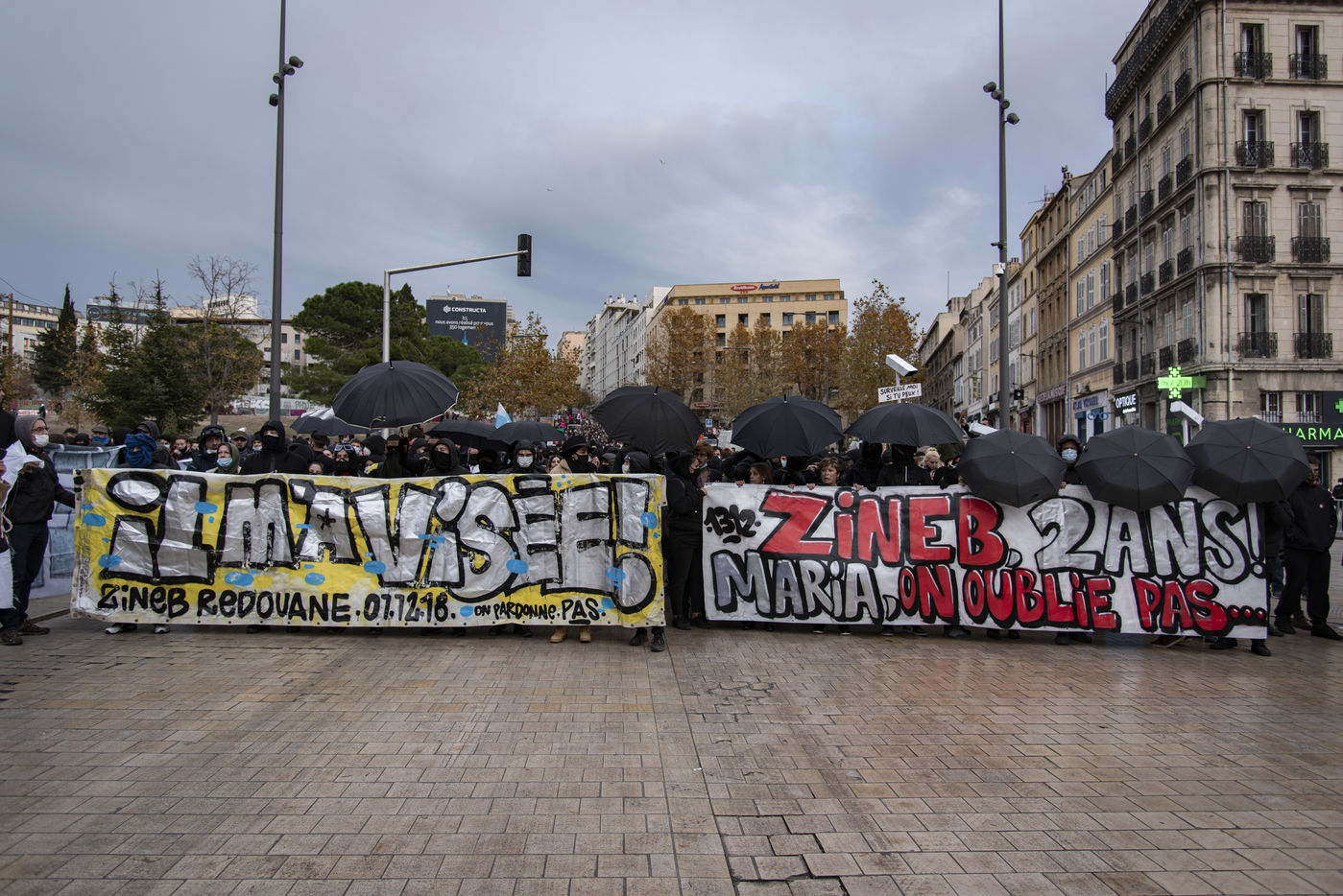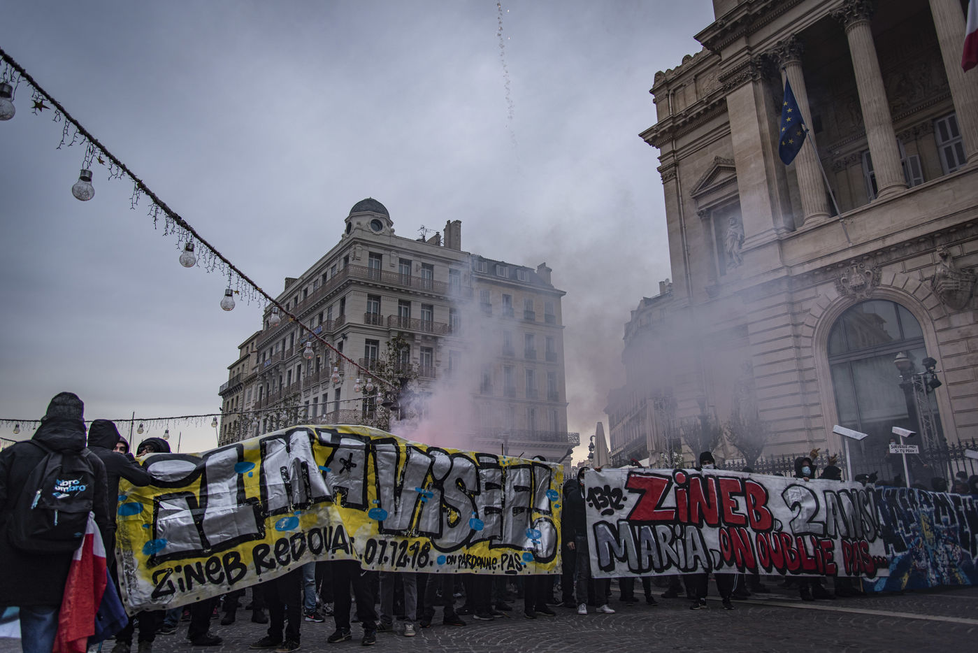 For more than three weeks now, demonstrations have been going on in Marseille against the "Global Security" law. The one on Saturday 5 December also took the form of a commemoration following the death of Zineb Redouane, who died on the sidelines of a demonstration of yellow jackets two years ago in the Marseilles city.