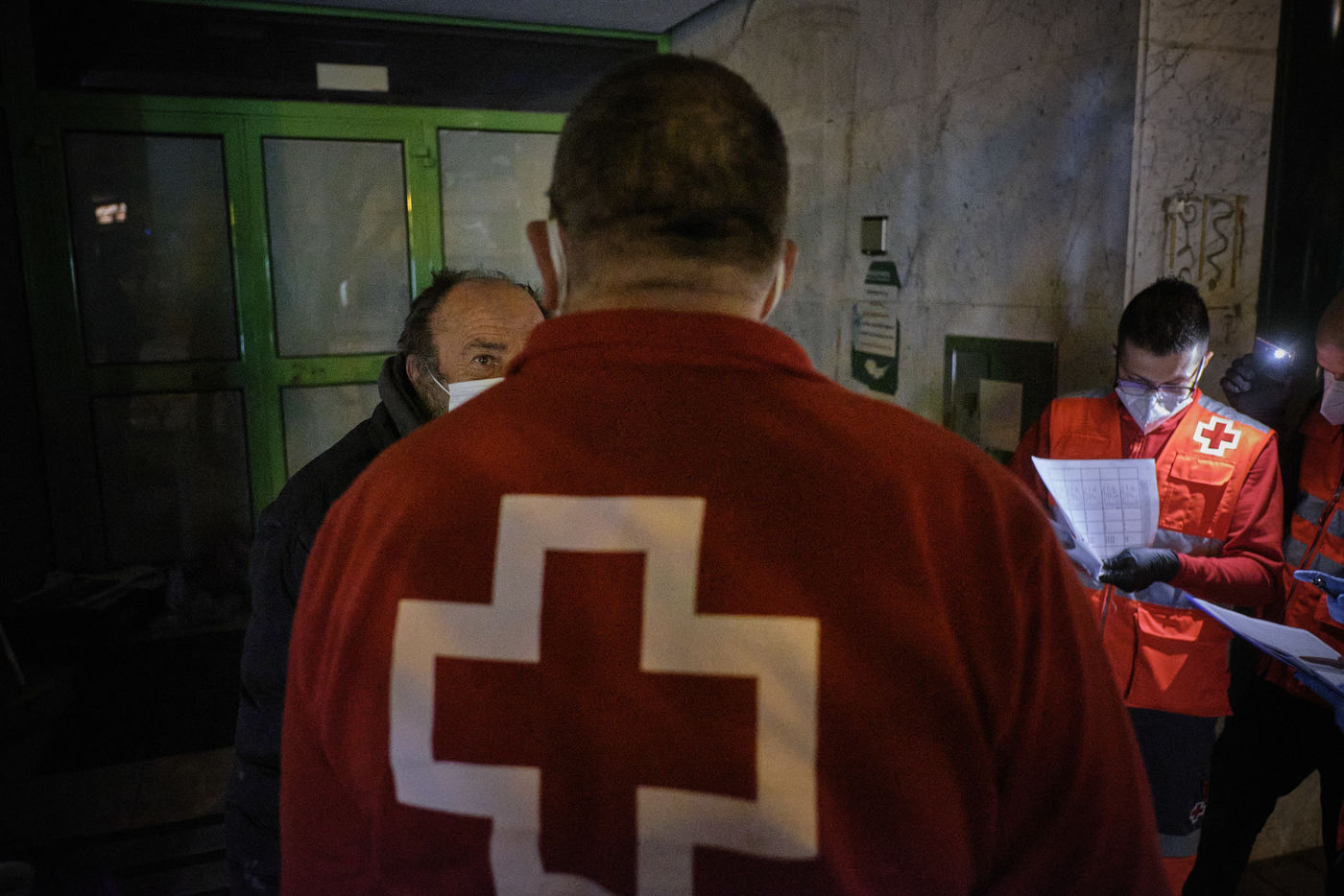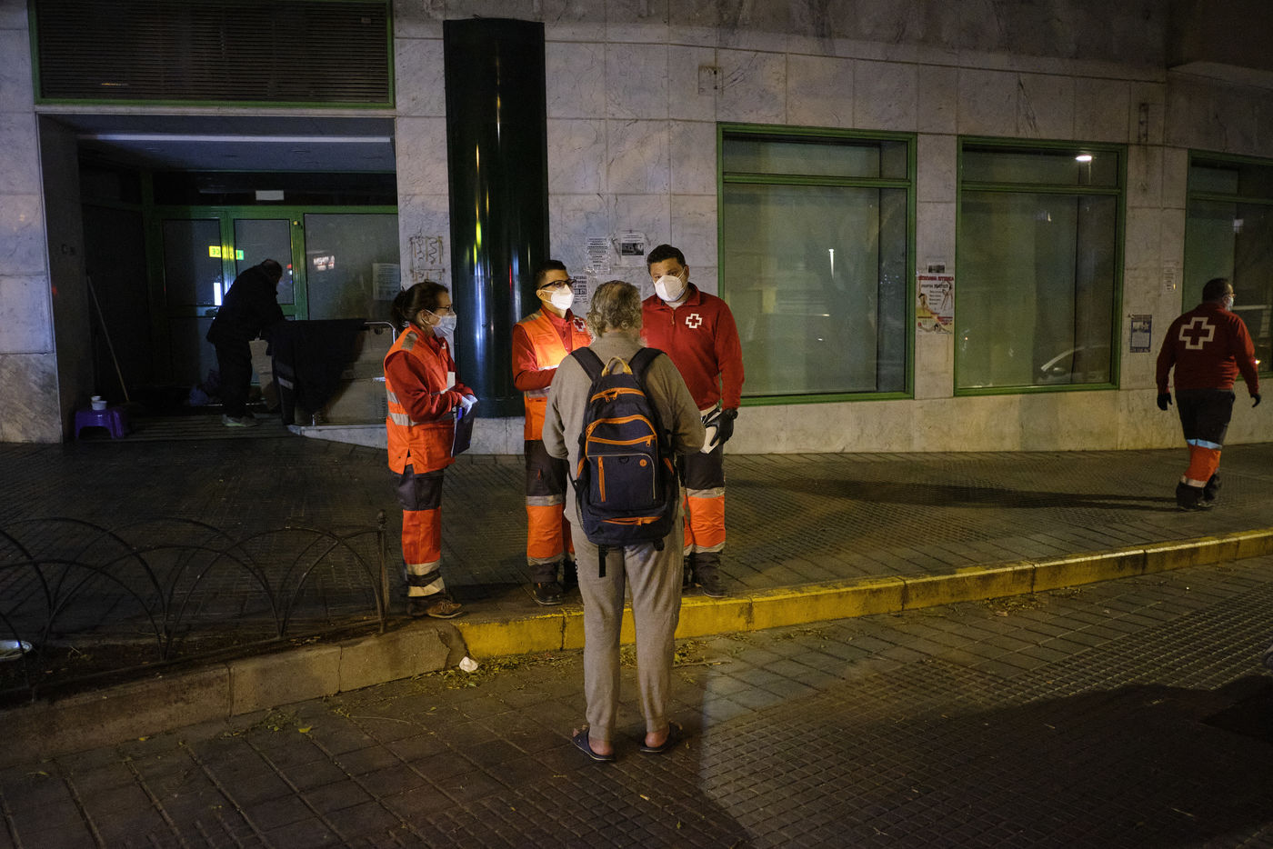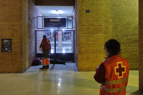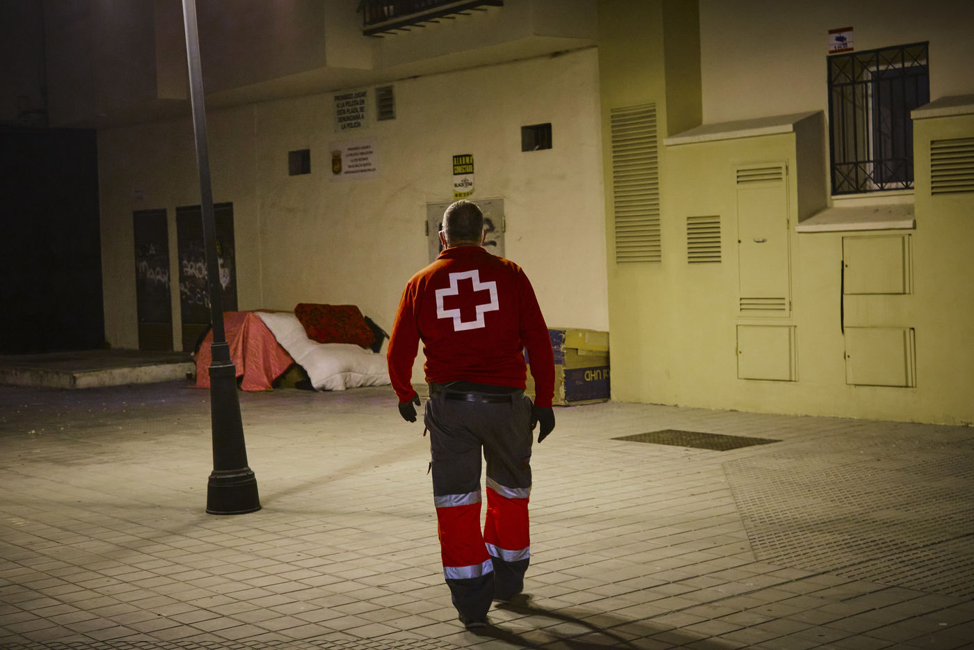 Depuis le début de la pandémie, le nombre de sans-abris dans la ville de Malaga a considérablement augmenté. Avec l'aide de bénévoles, la Croix Rouge organise quotidiennement des maraudes nocturnes sillonnant les rues à la recherche de personnes qui passeront la nuit dehors dans le froid. Durant leurs tournées, les volontaires distribuent de la nourriture, des vêtements chauds, des couvertures, des produits hygiéniques, des masques.