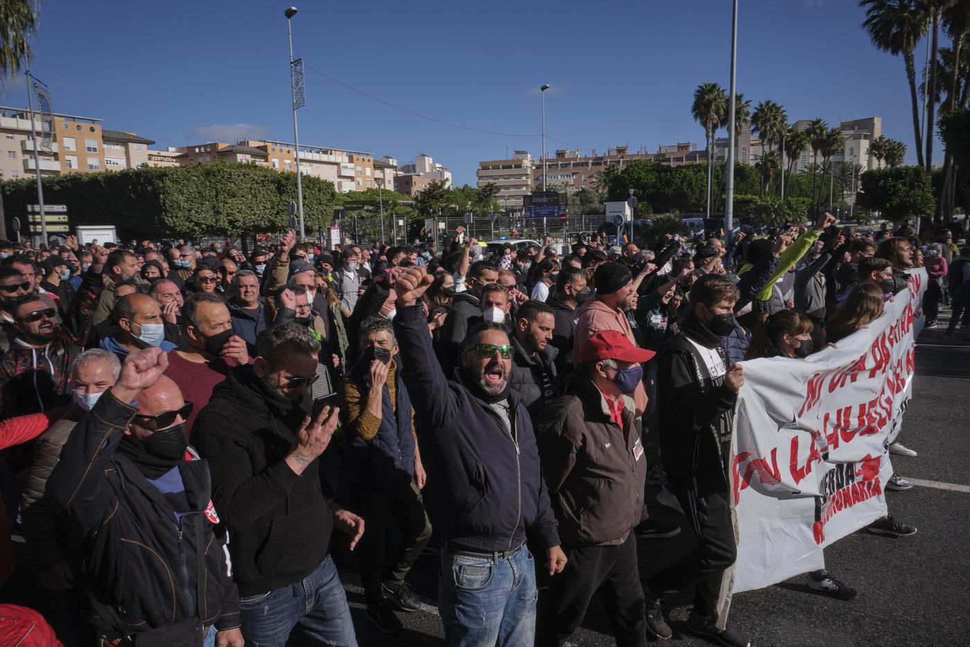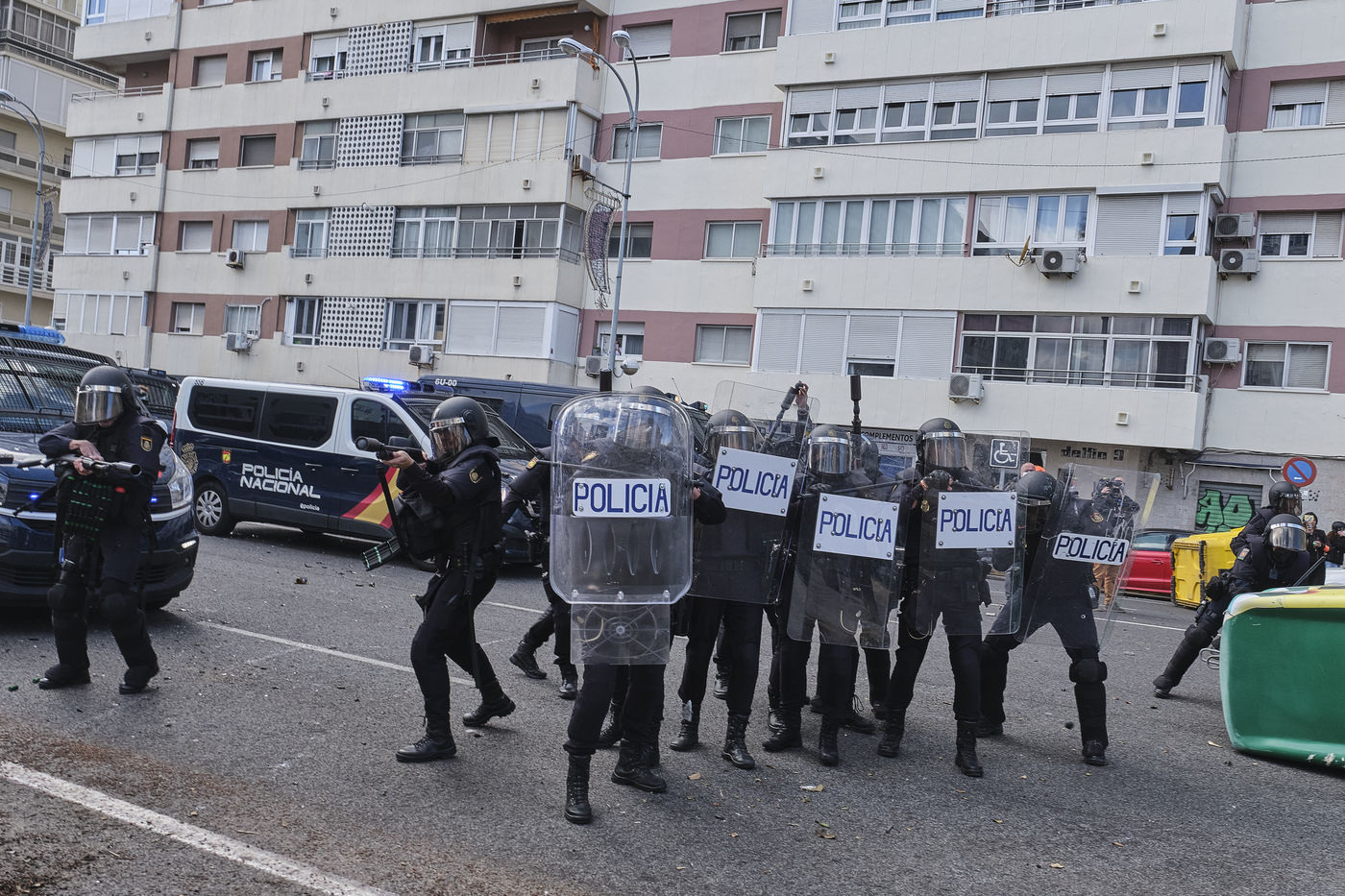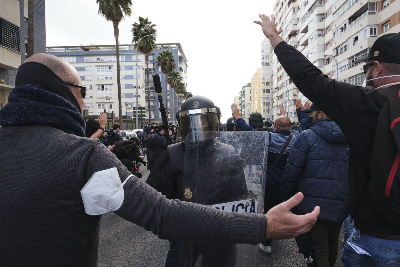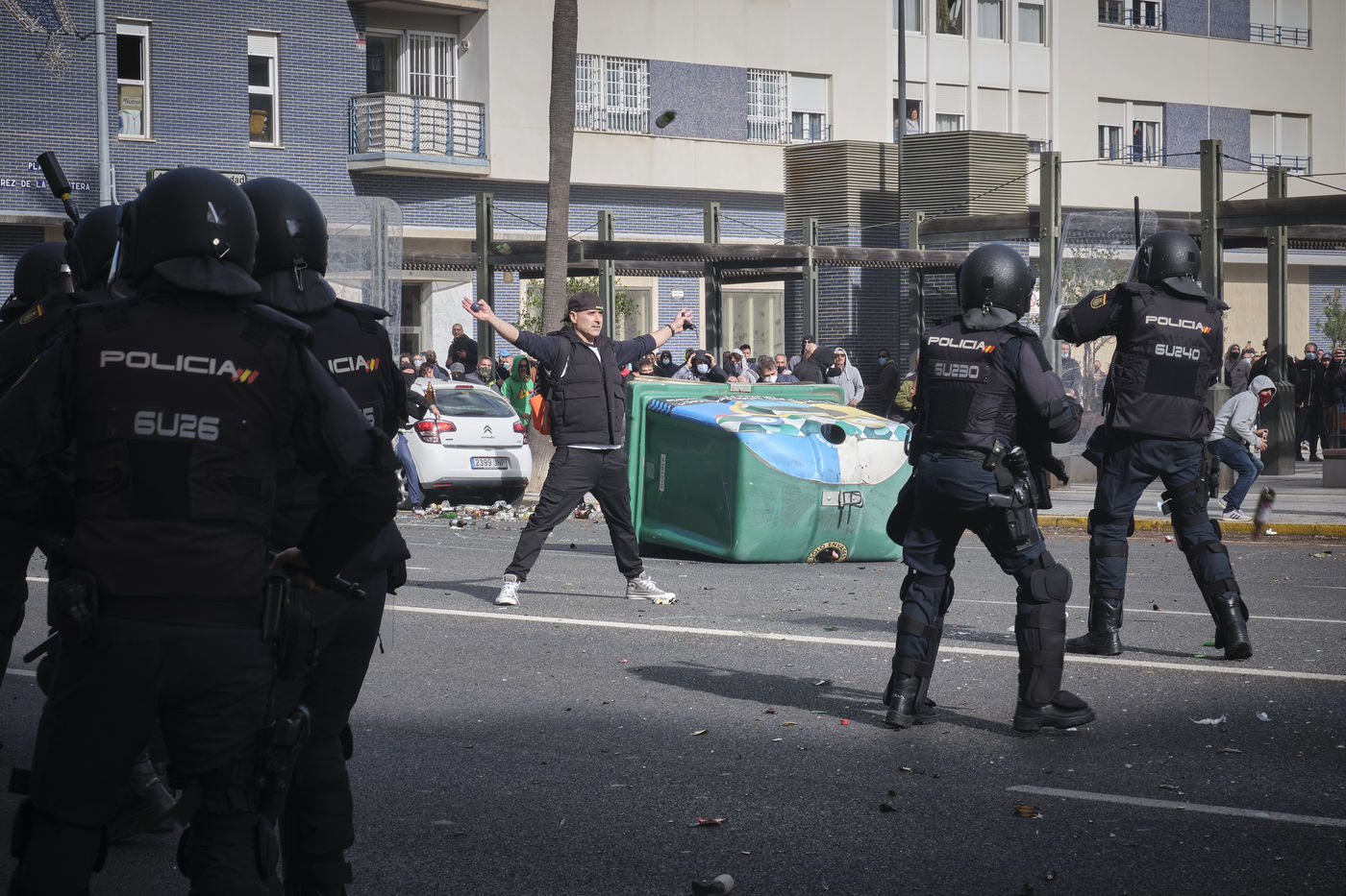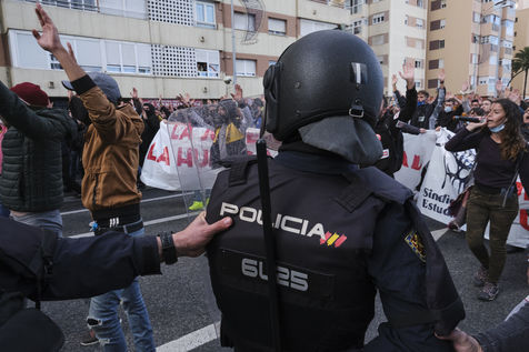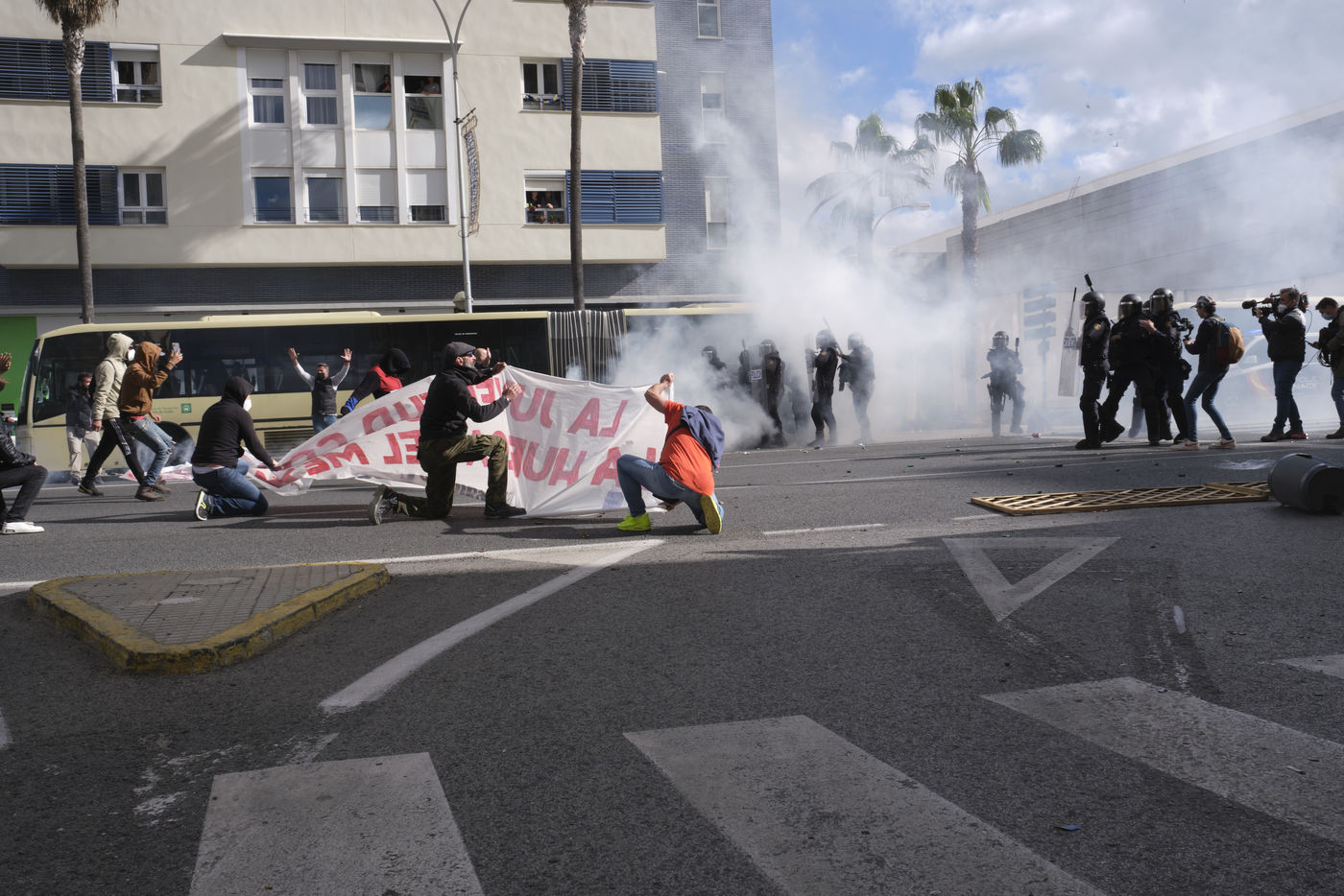 Une grande manifestation avec des milliers de personnes a défilé dans les rues de la capitale de Cadix au huitième jour de la grève générale illimitée. Selon les syndicats, environ 5 000 personnes ont participé à la manifestation, une mobilisation que la police a chiffrée à 1 500. Les perturbations ont commencé lorsque des manifestants ont érigé des barricades et jeté des objets sur les agents. S'en sont suivis de violents affrontements entre les manifestants et la police qui a répondu en tirant des gaz pour disperser la foule.