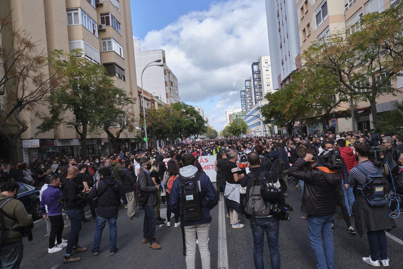 A large demonstration with thousands of people marched through the streets of the capital of Cadiz on the eighth day of the unlimited general strike. According to the unions, around 5,000 people took part in the demonstration, a mobilisation that the police put at 1,500. The disruption began when demonstrators set up barricades and threw objects at officers. Violent clashes ensued between the protesters and the police, who responded by firing gas to disperse the crowd.