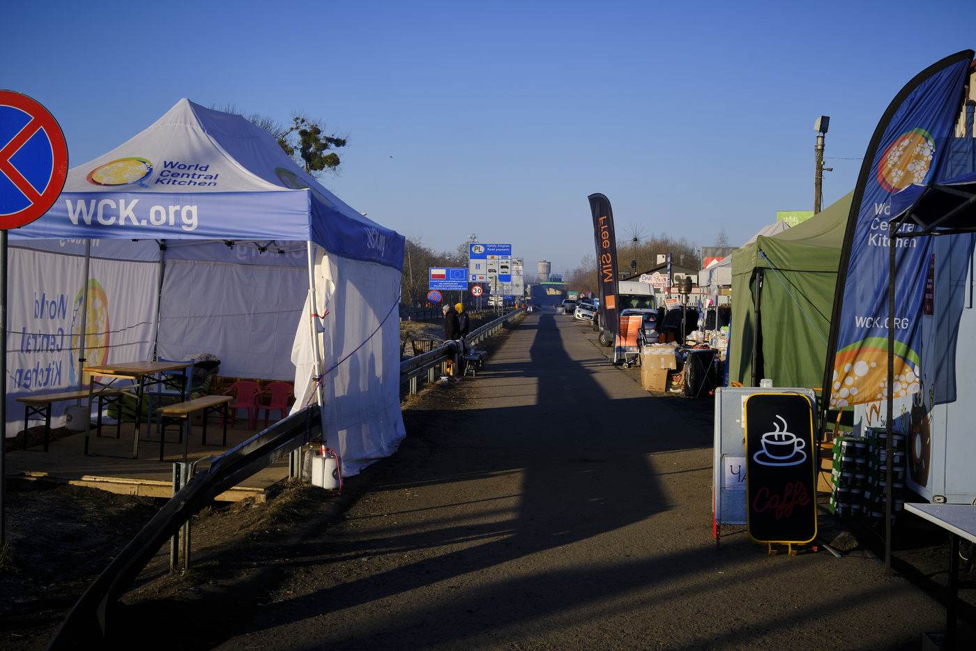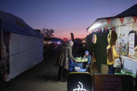 De nombreux lieux de transit ont été mis en place le long de la frontière entre l'Ukraine et la Pologne.
