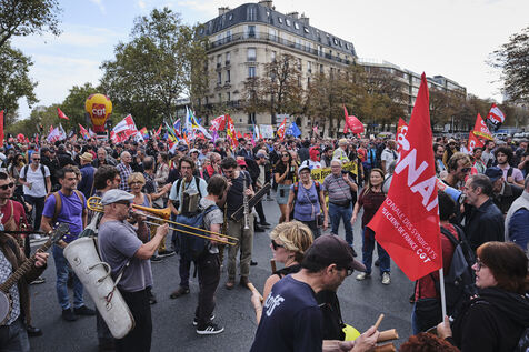 20 000 manifestants étaient présents dans les rues de Paris dans le cadre de la journée intersyndicale contre l'austérité du gouvernement et pour demander des hausses de salaires et des conditions de travail meilleures.