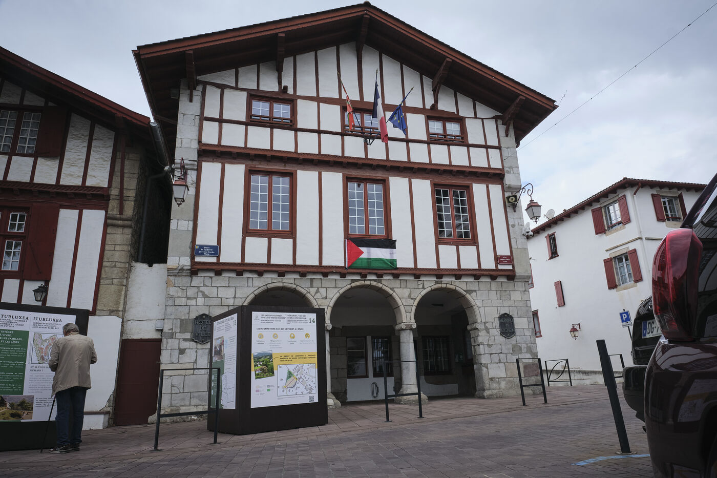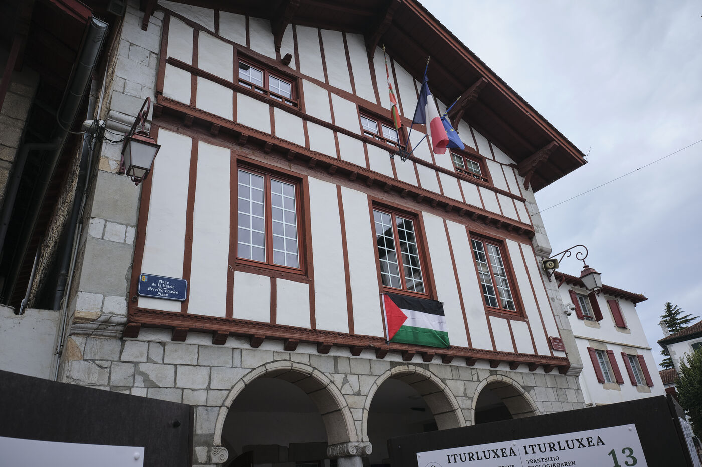 Hôtel de ville d'Urrugne avec le drapeau palestinien