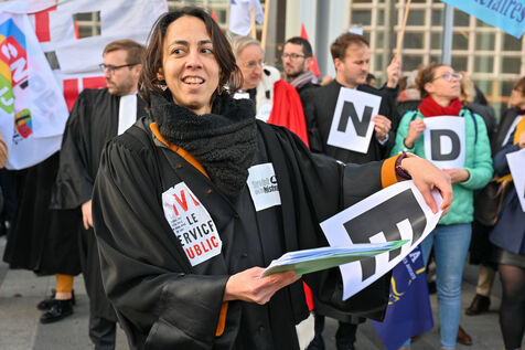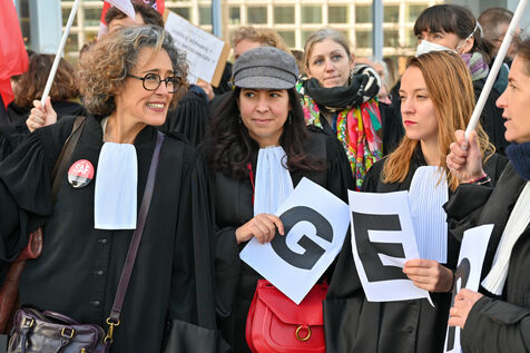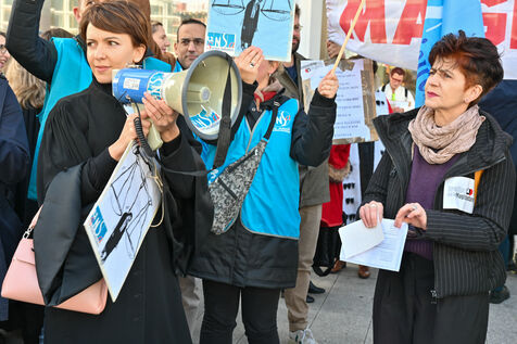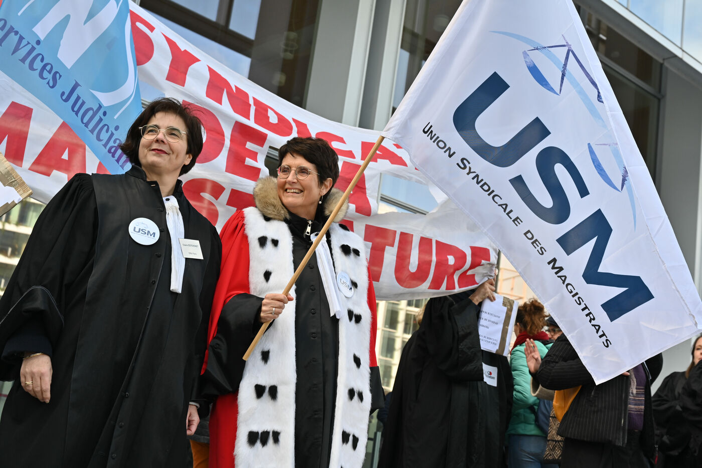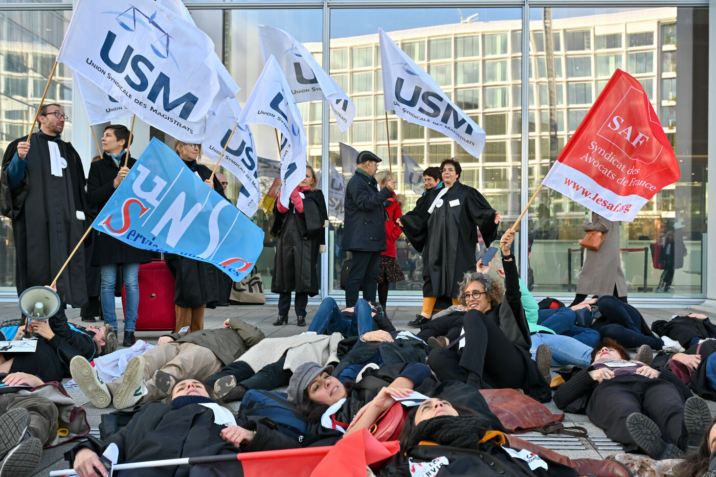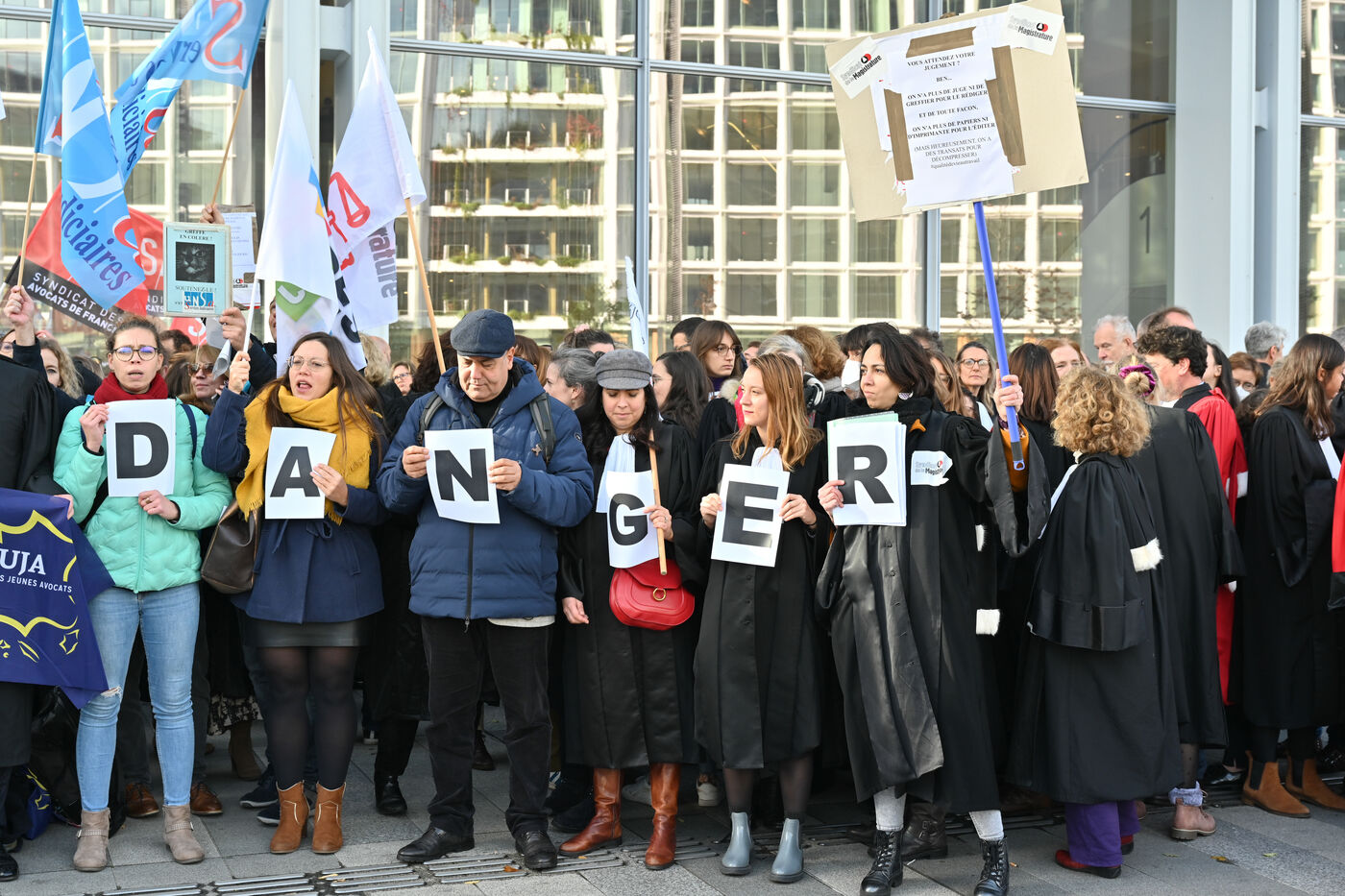 A Paris devant le tribunal judiciaire, les magistrats, avocats et greffiers se mobilisent pour dire le ras-le-bol d'une profession confrontée à une "charge de travail titanesque".