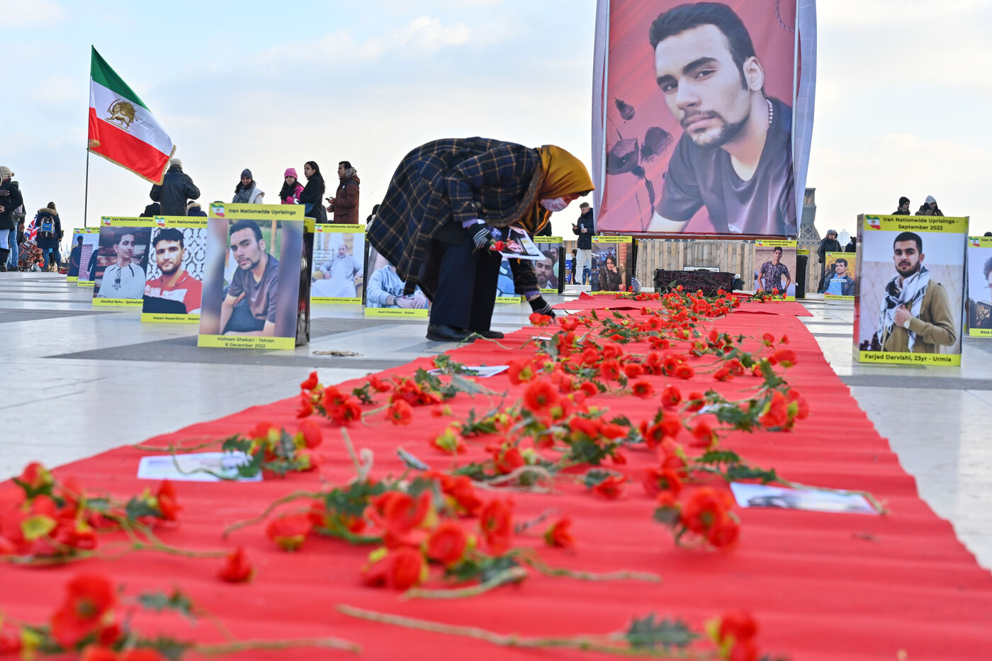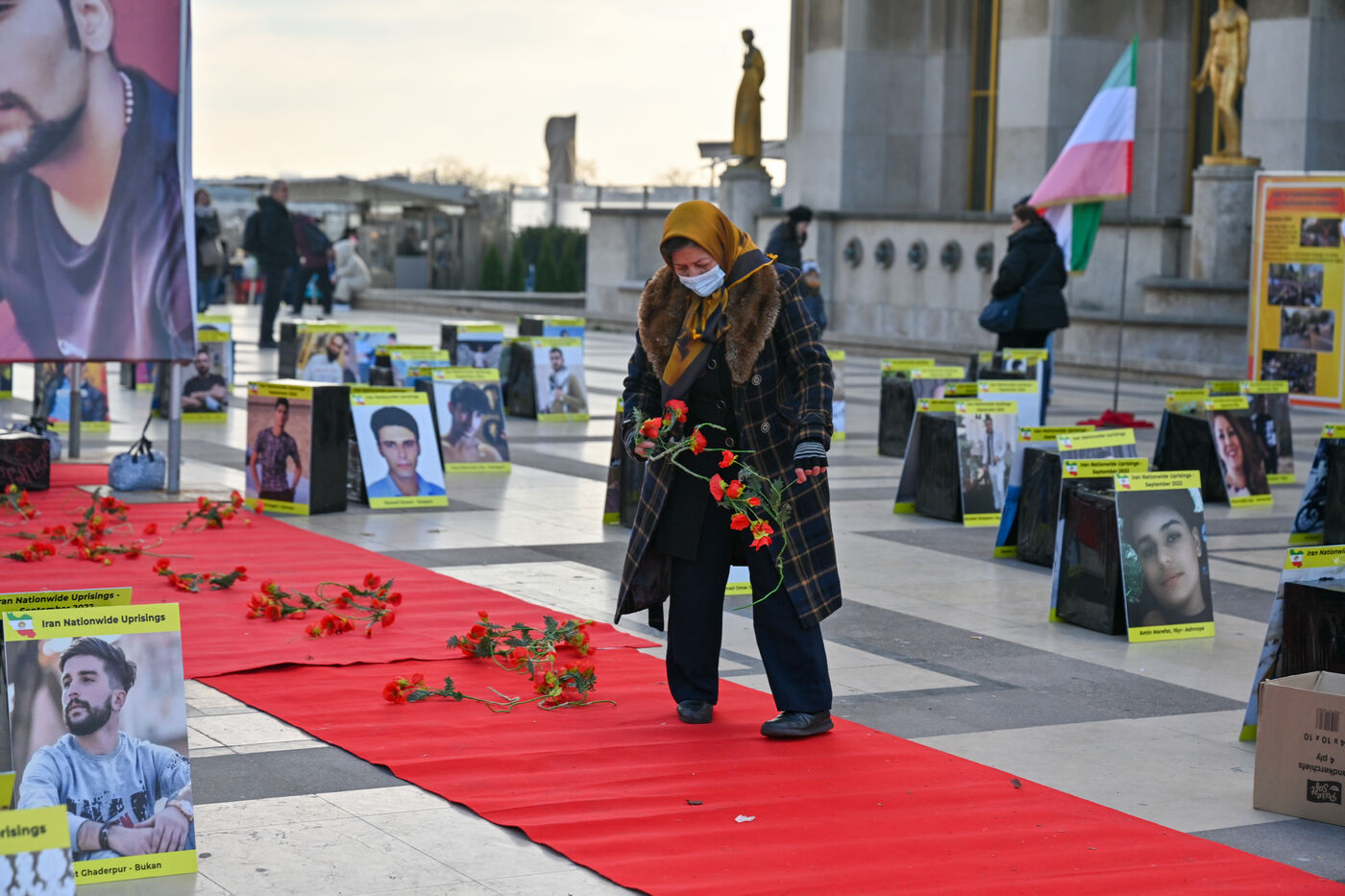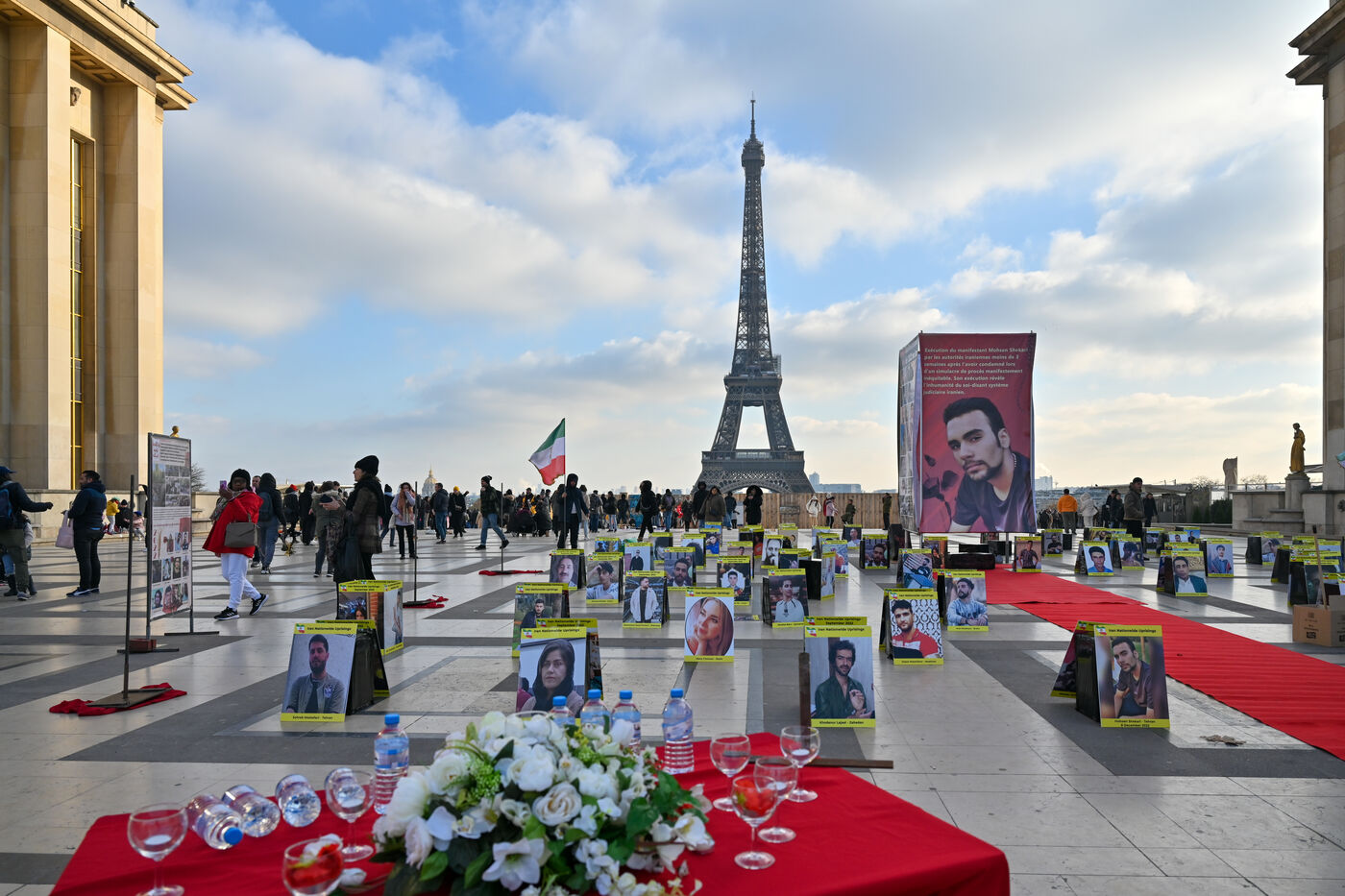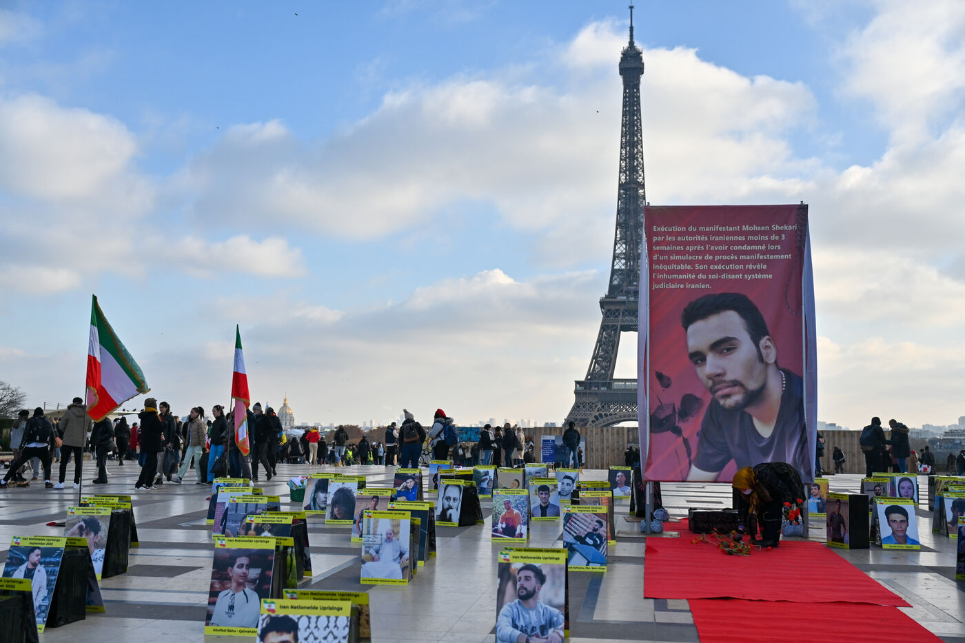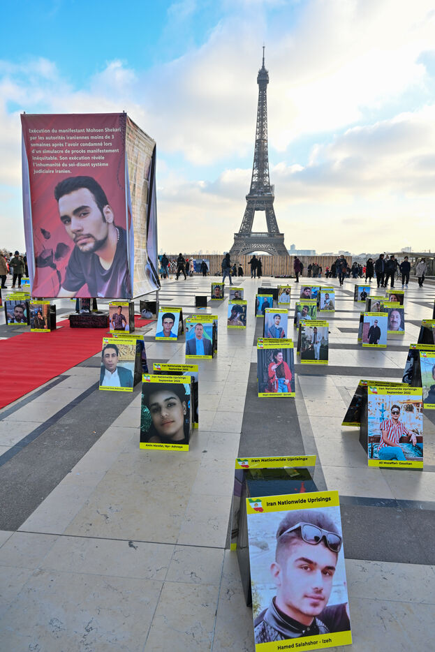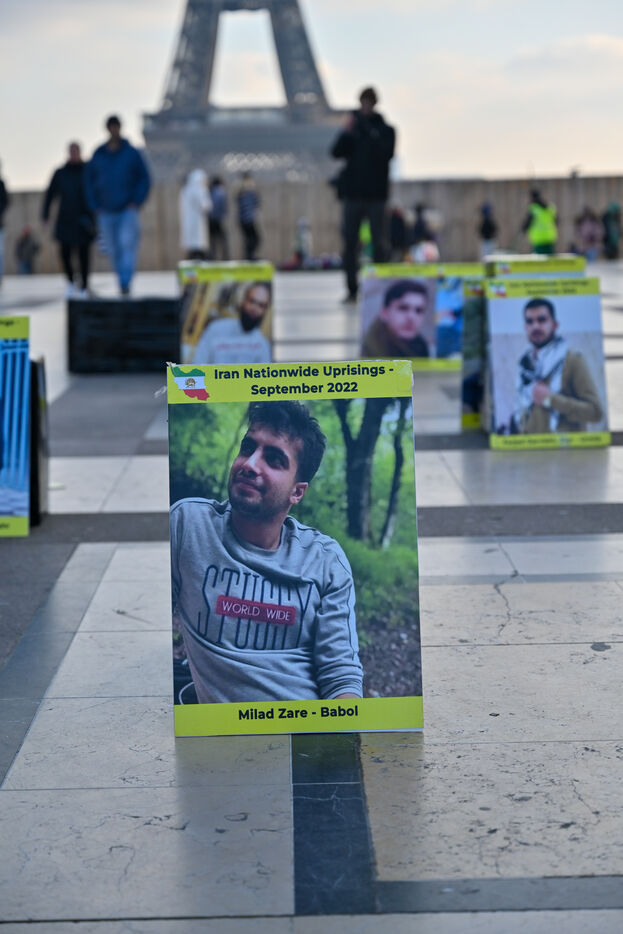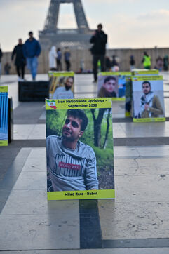 Manifestation en soutien au soulèvement en Iran, sur le parvis des droits de l homme au Trocadero. Y sont exposés les portraits des victimes de la police et de l Etat iranien.